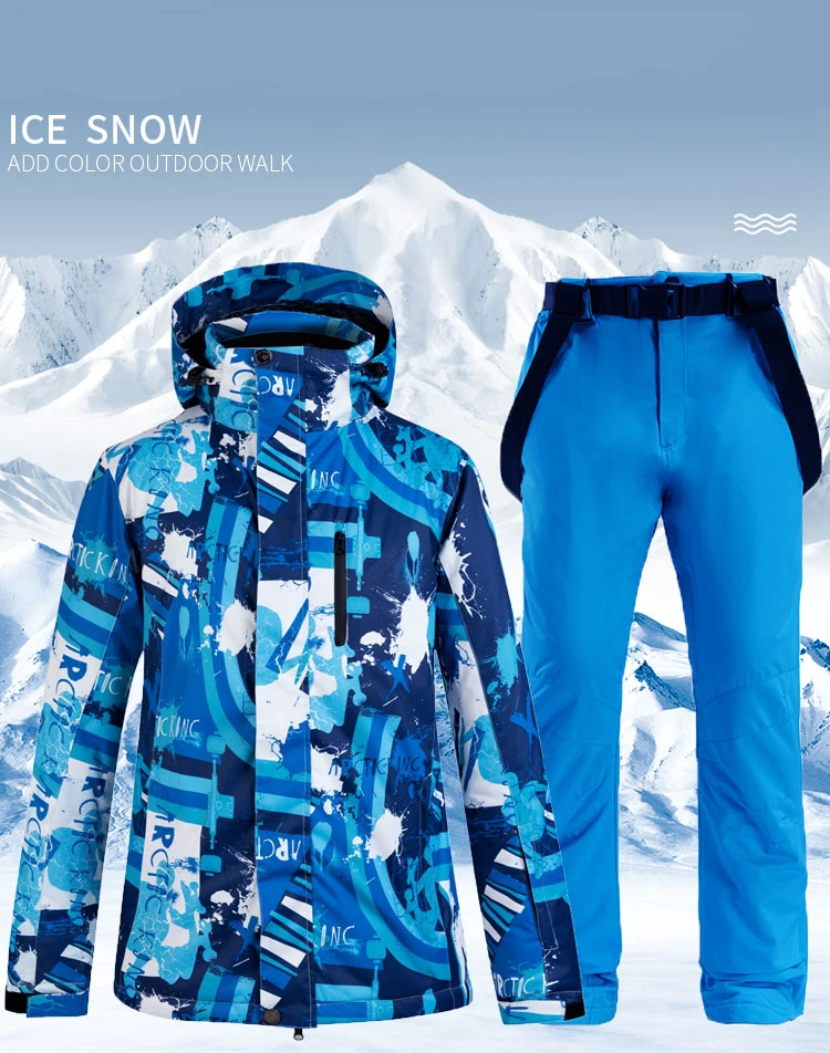 Мужской лыжный костюм, теплый водонепроницаемый ветрозащитный костю...