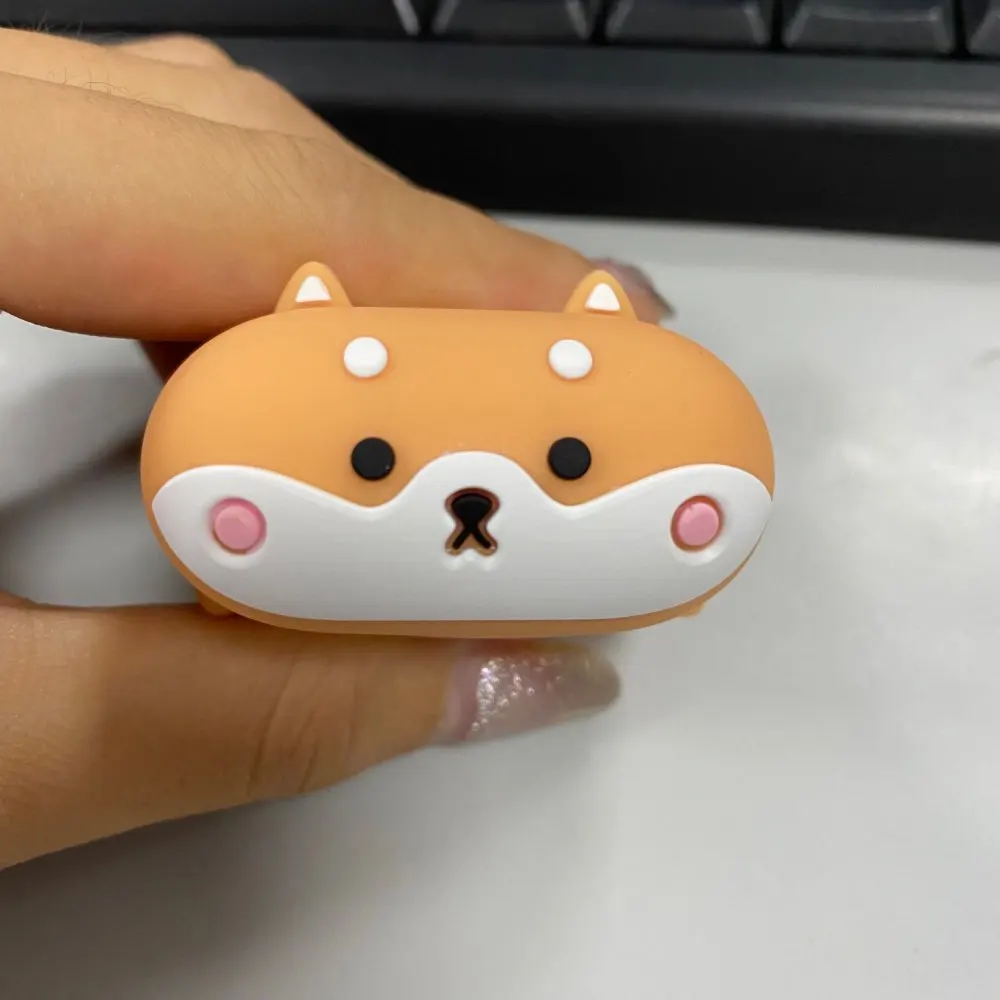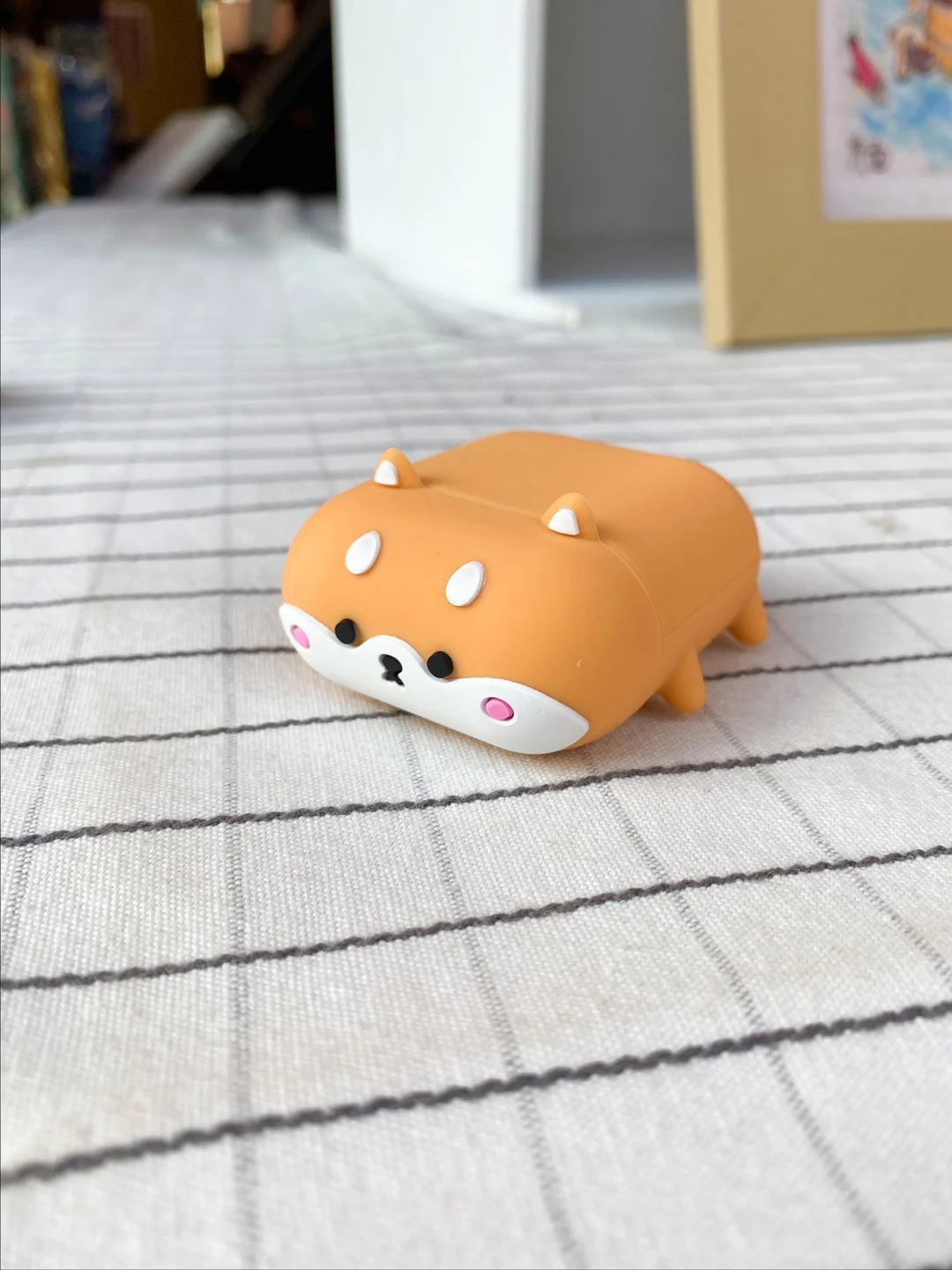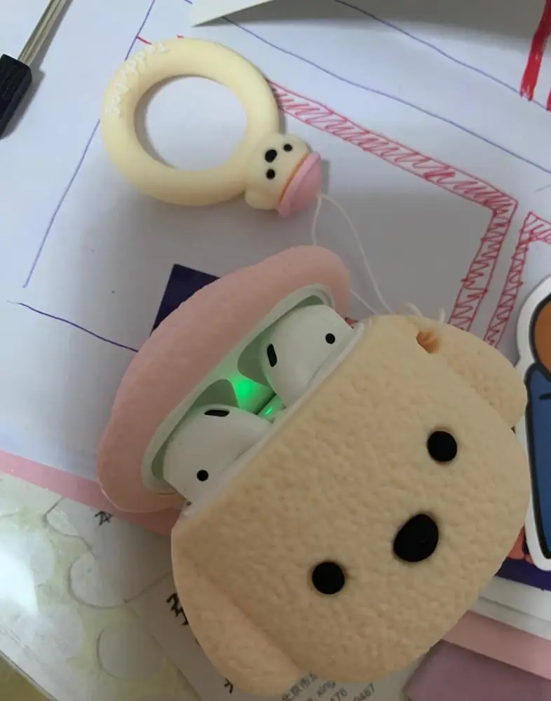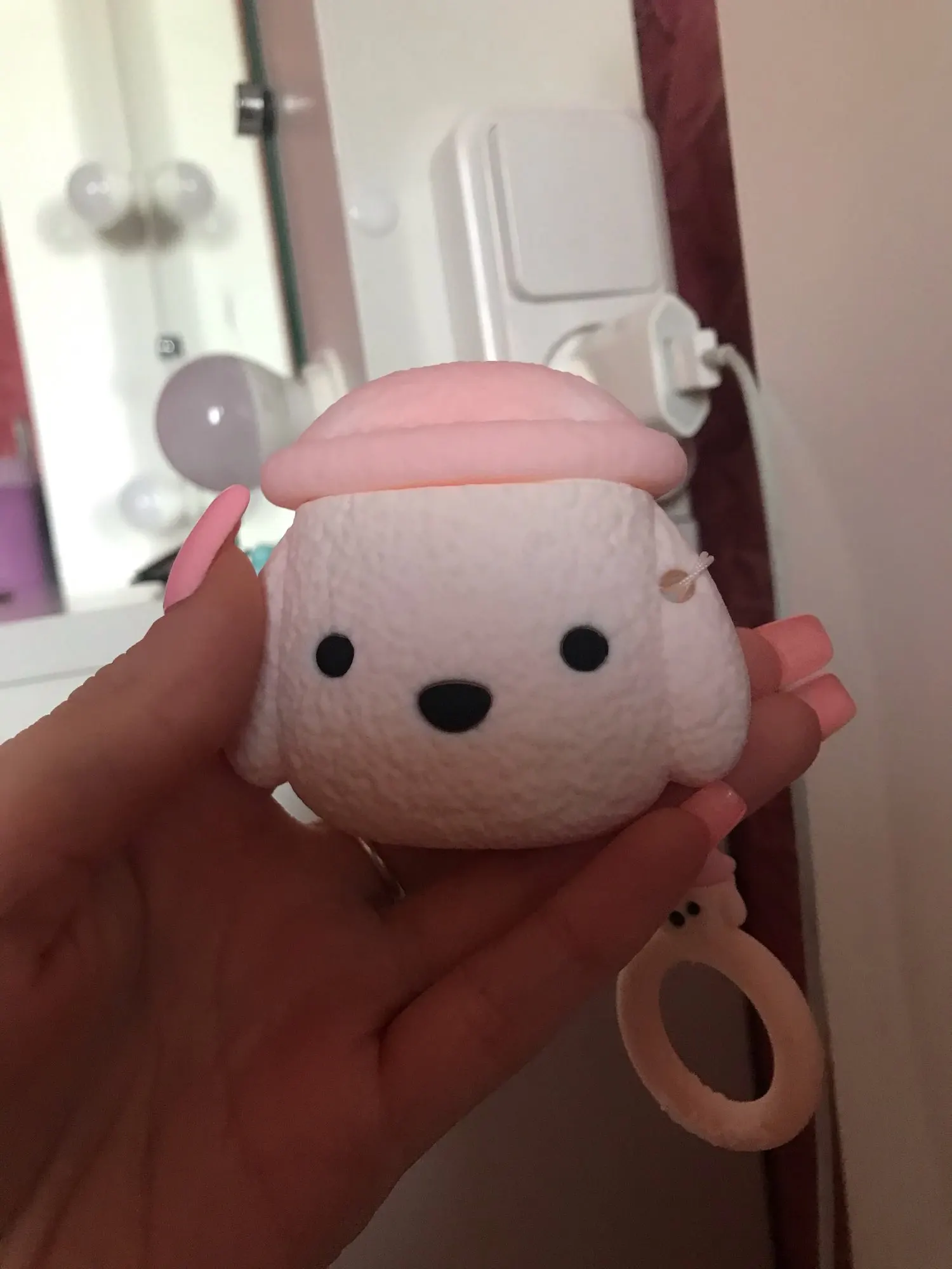 Прекрасный чехол для наушников с пёселем Пришёл довольно быстро (2-3 недели) до Томска. Материал из которого выполнен чехол является чем-то между силиконом и пластмассой. Чехол сильно не пачкается и не спадает (при этом проблем со снятием чехла не возникает). Проблем с закрытием и открытием кейса для наушников у меня также не возникло. Сам чехол довольно милый. Да имеются небольшие излишки материала, но это можно легко убрать.