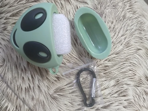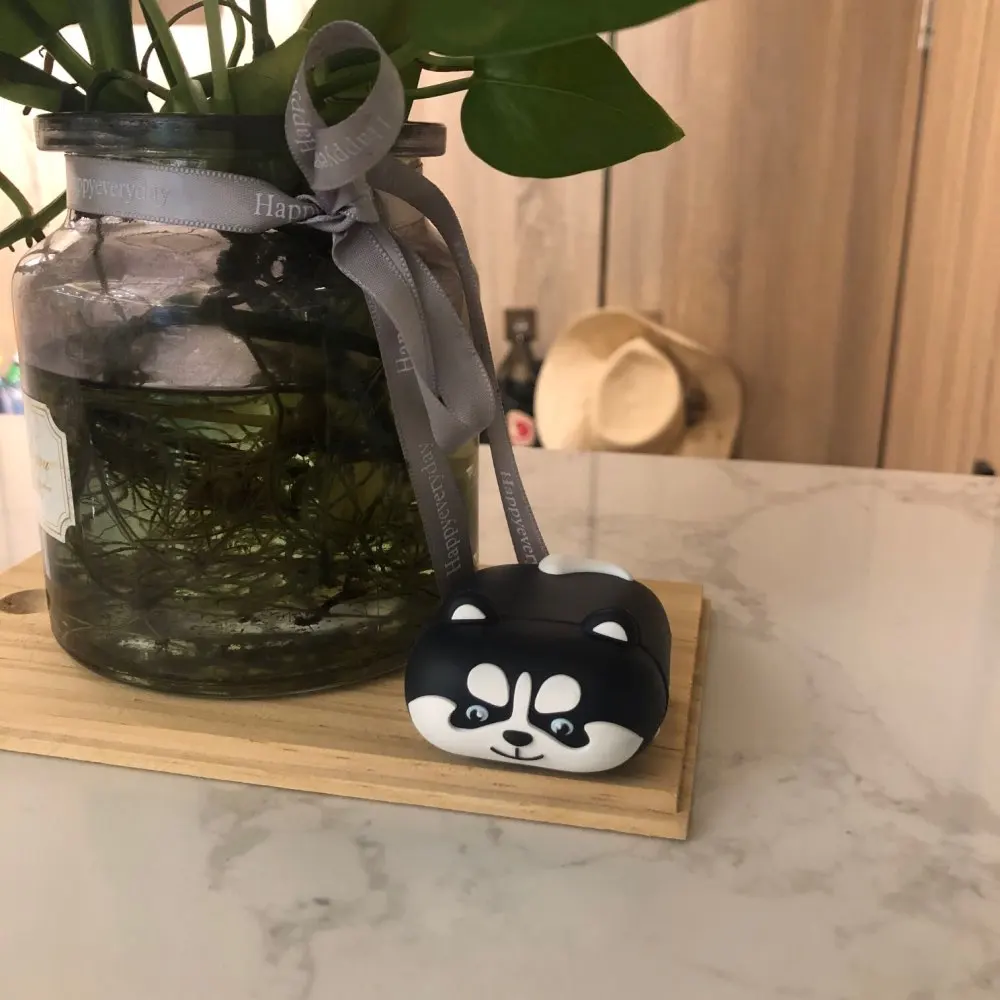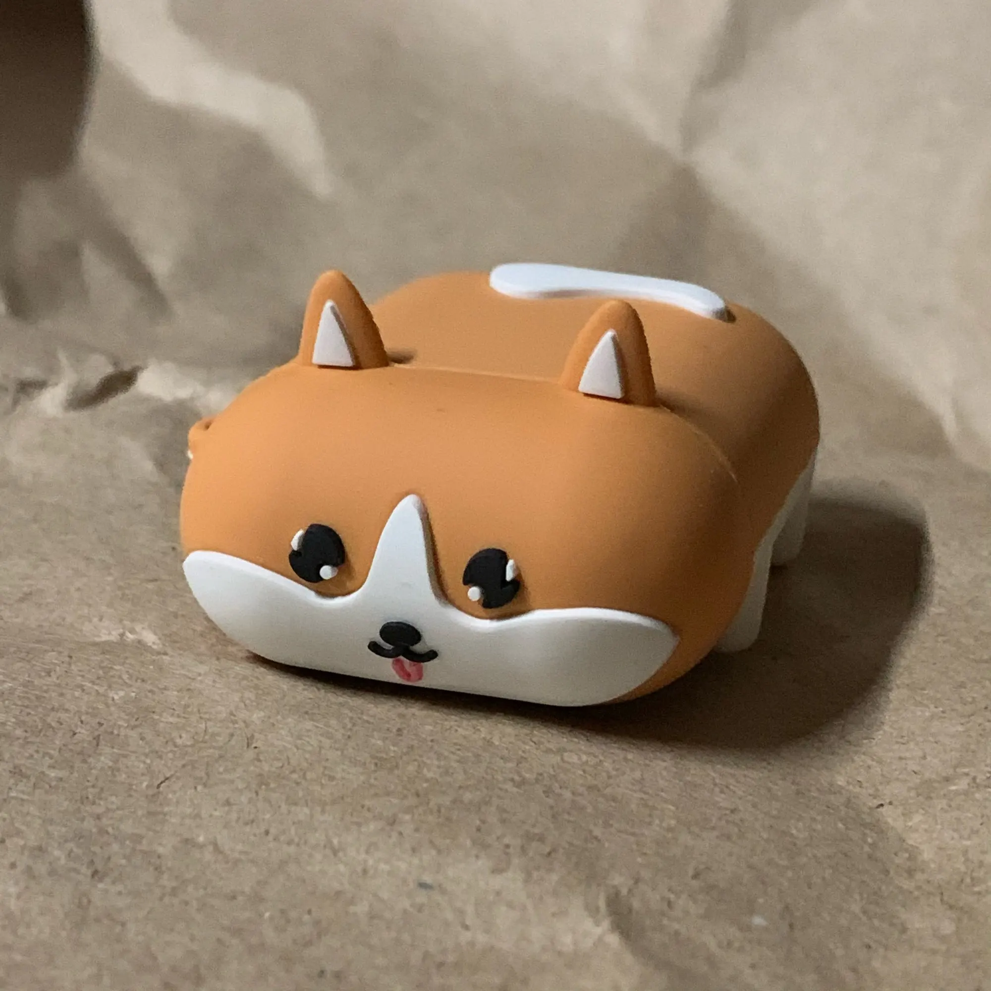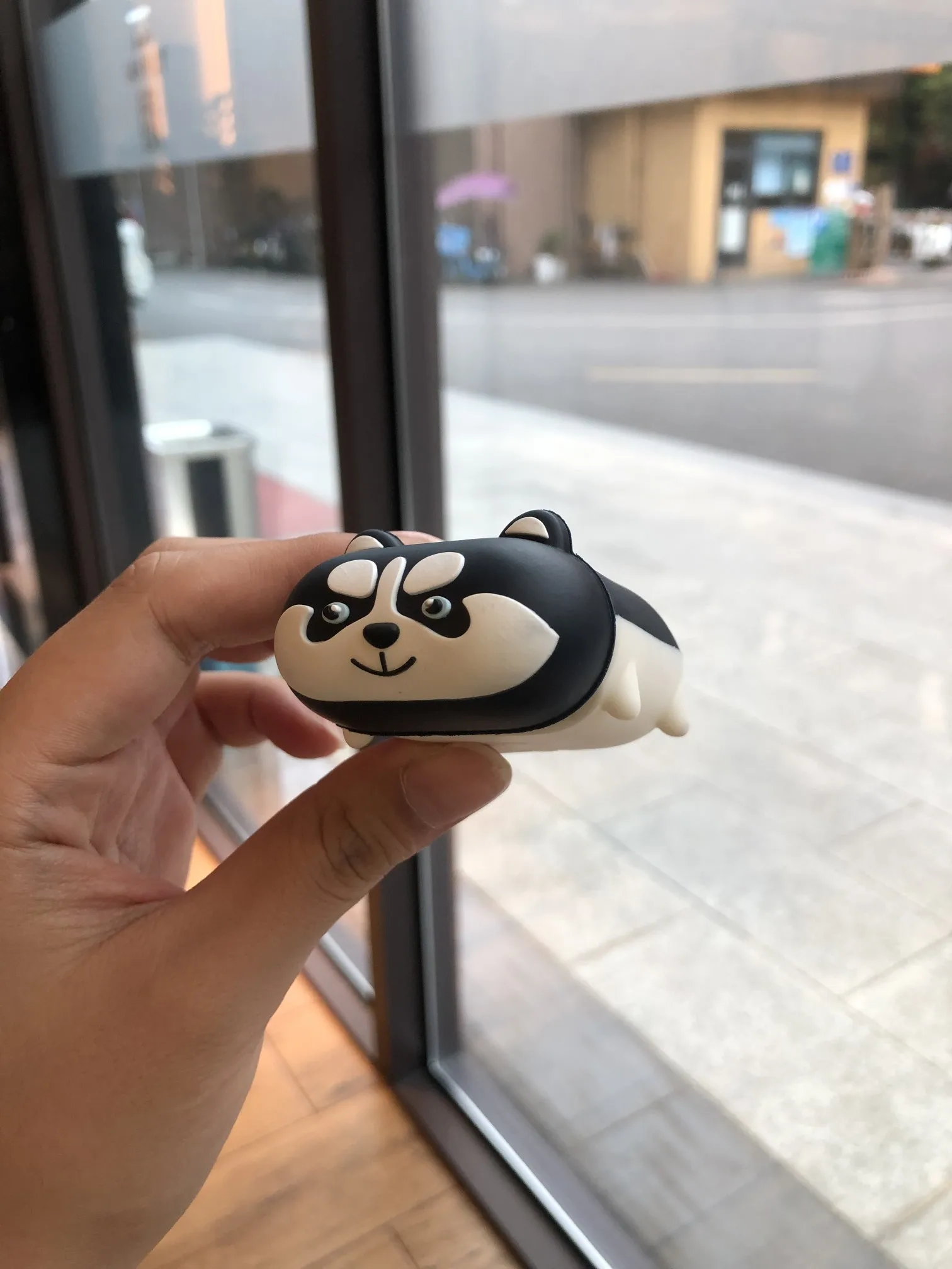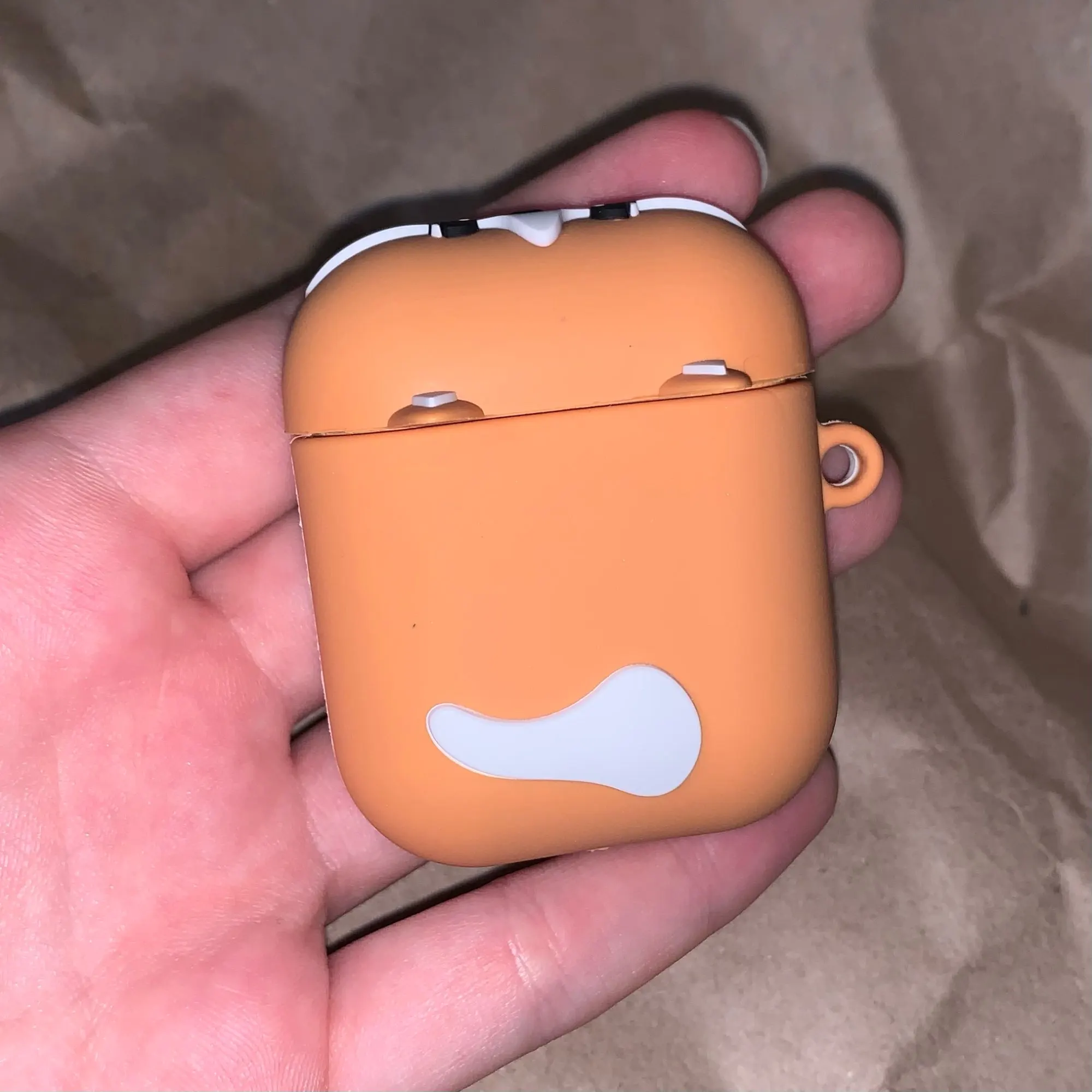 Прекрасный чехол для наушников с пёселем Пришёл довольно быстро (2-3 недели) до Томска. Материал из которого выполнен чехол является чем-то между силиконом и пластмассой. Чехол сильно не пачкается и не спадает (при этом проблем со снятием чехла не возникает). Проблем с закрытием и открытием кейса для наушников у меня также не возникло. Сам чехол довольно милый. Да имеются небольшие излишки материала, но это можно легко убрать.
