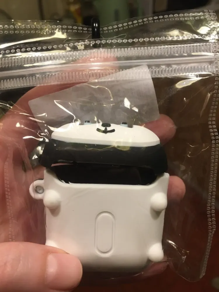 Руки вниз один из моих любимых airpod случае! Две дополнительные шляпы продали мне, чтобы быть честным. Теперь он подходит к моему чехлу для Iphone, и я очень доволен им. Это немного громоздкий, но она милая и нет запаха. Это очень стоит того.