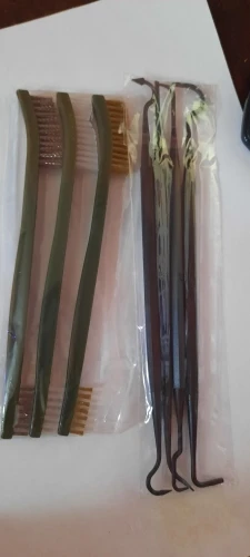 Соответствует фотографии. Латунная/медная щетка? Очень гибкий, хороший, более твердый, гладкий. 3 очень различных уровня твердости.