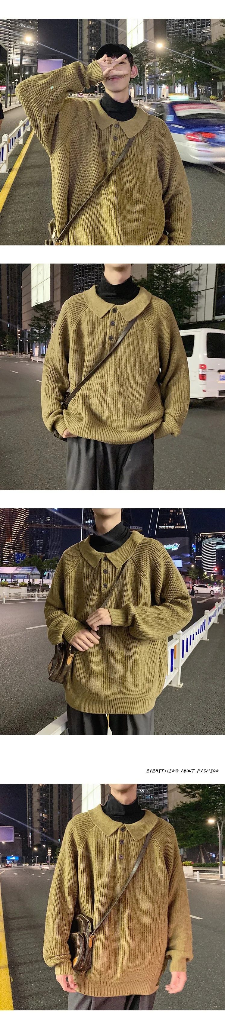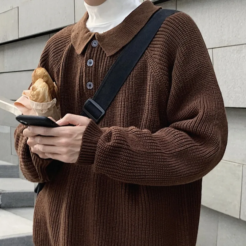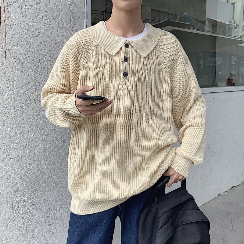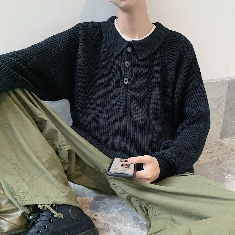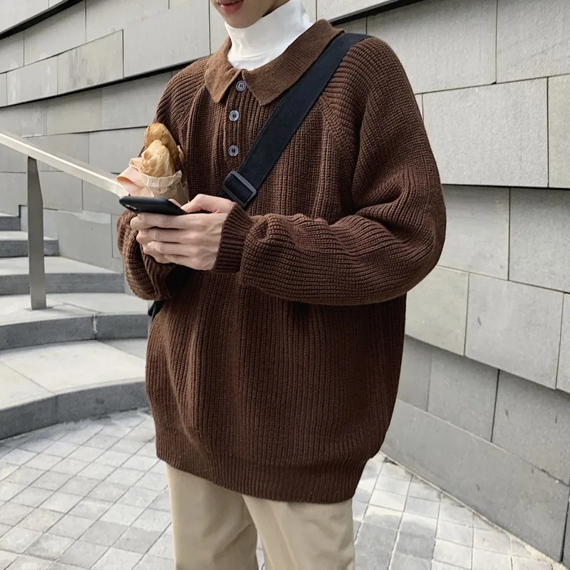 Осенний новый свитер мужской теплый модный однотонный Повседневный вязаный свитер с отворотом мужской уличная свободный свитер с длинными рукавами M-2XL