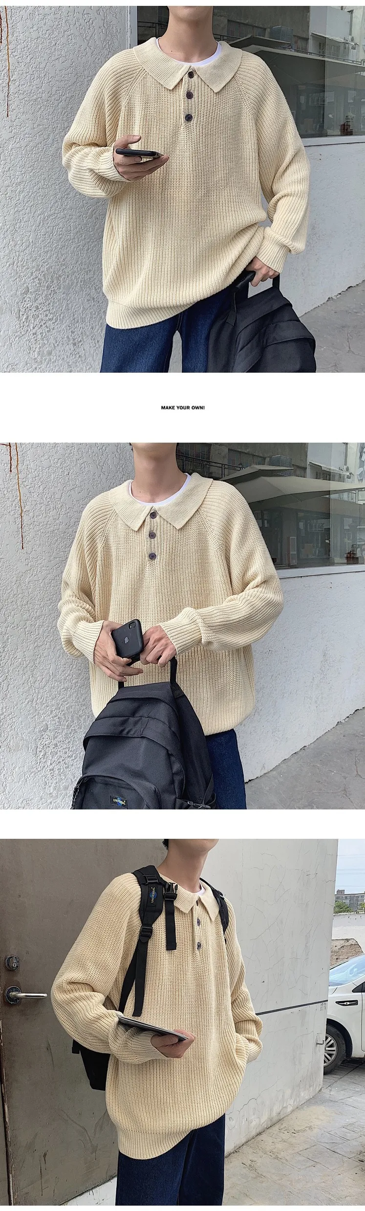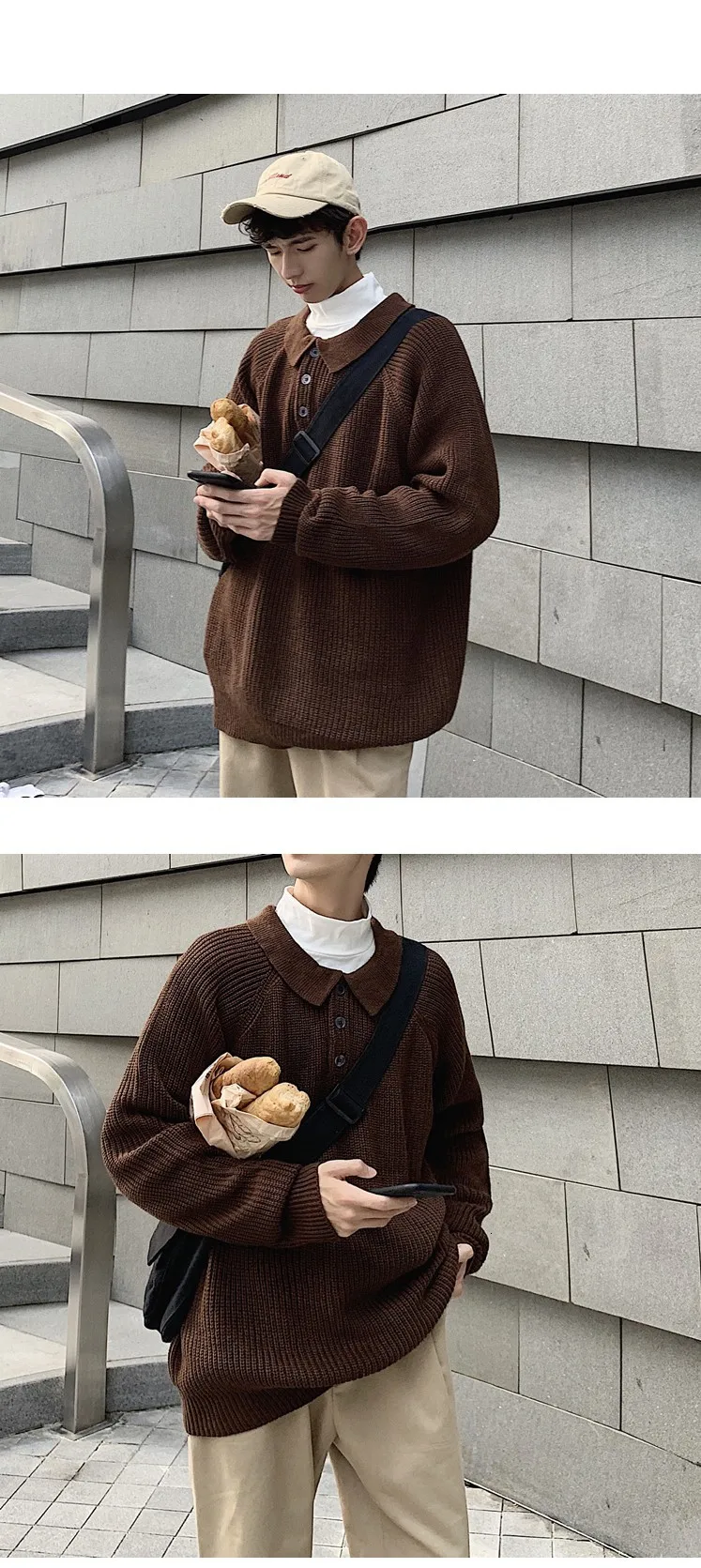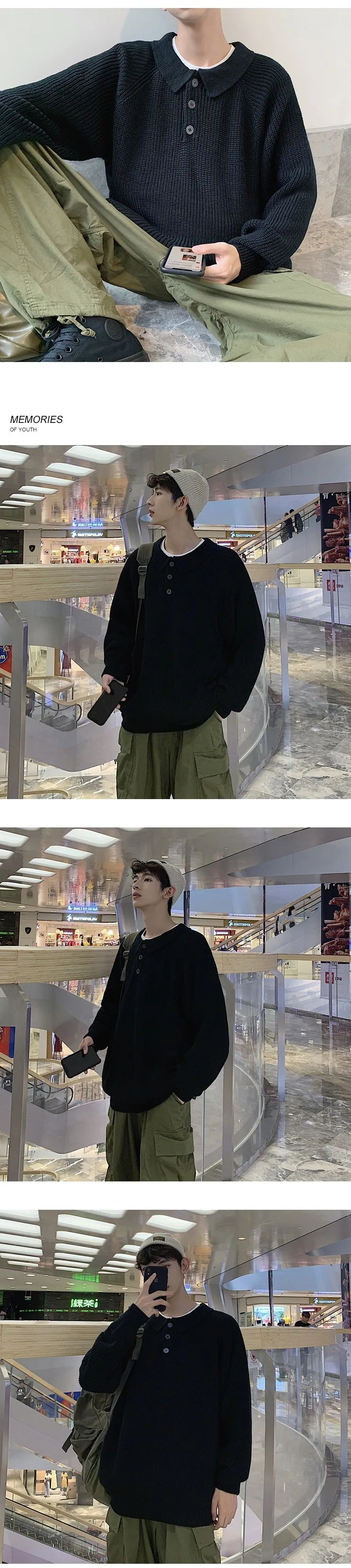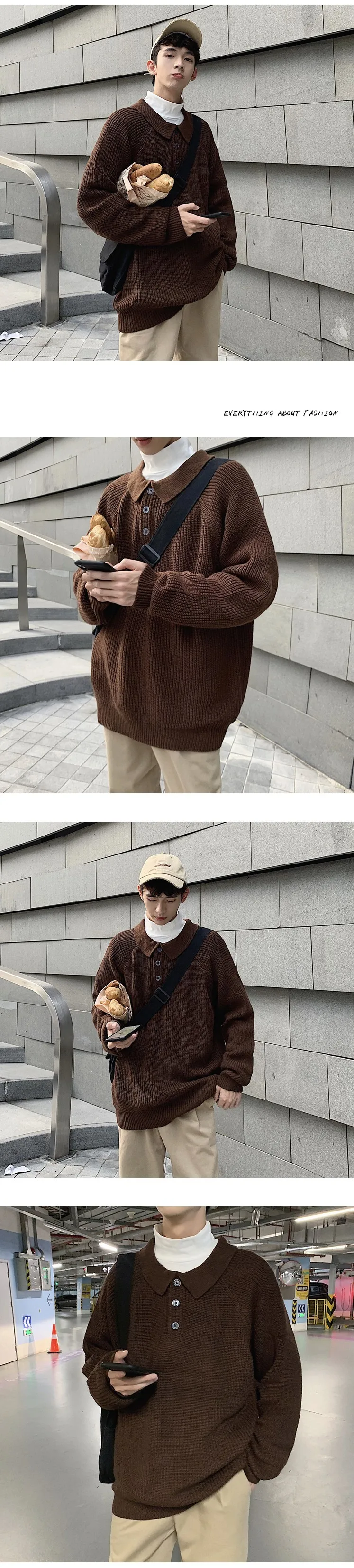 Осенний новый свитер мужской теплый модный однотонный Повседневный вязаный свитер с отворотом мужской уличная свободный свитер с длинными рукавами M-2XL