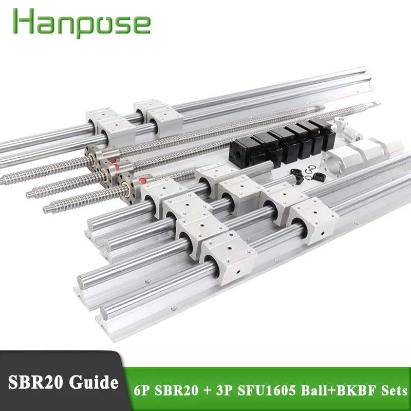 SBR20 линейная направляющая любой длины, 6 комплектов, линейная рейка + SBR20UU + блоки линейных подшипников + шариковый винт SFU1605 + 3 BK12BF12