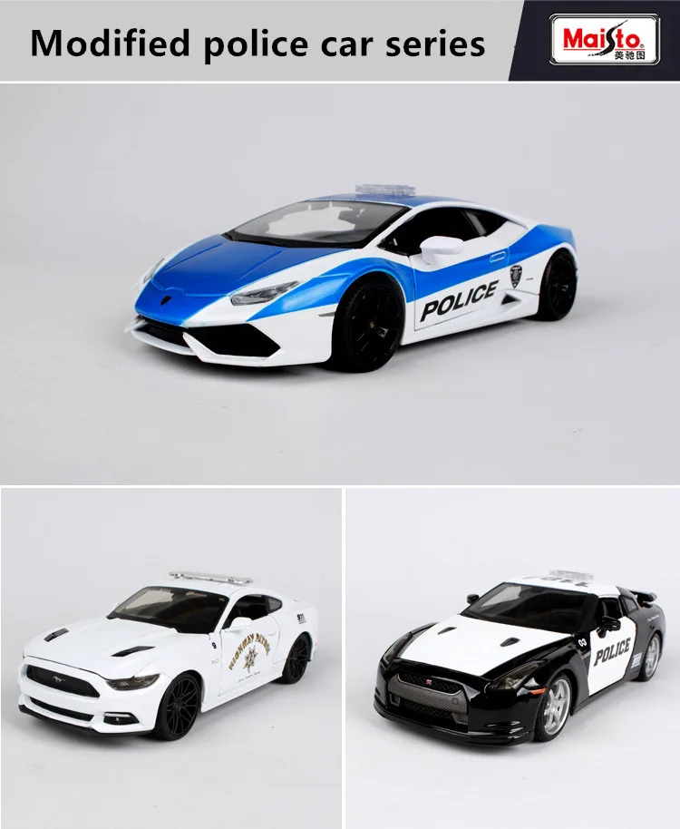 Модель полицейского автомобиля Maisto 1:24 Nissan-GTR, литая модель автомобиля, имитация автомобиля, коллекция украшений, Подарочная игрушка