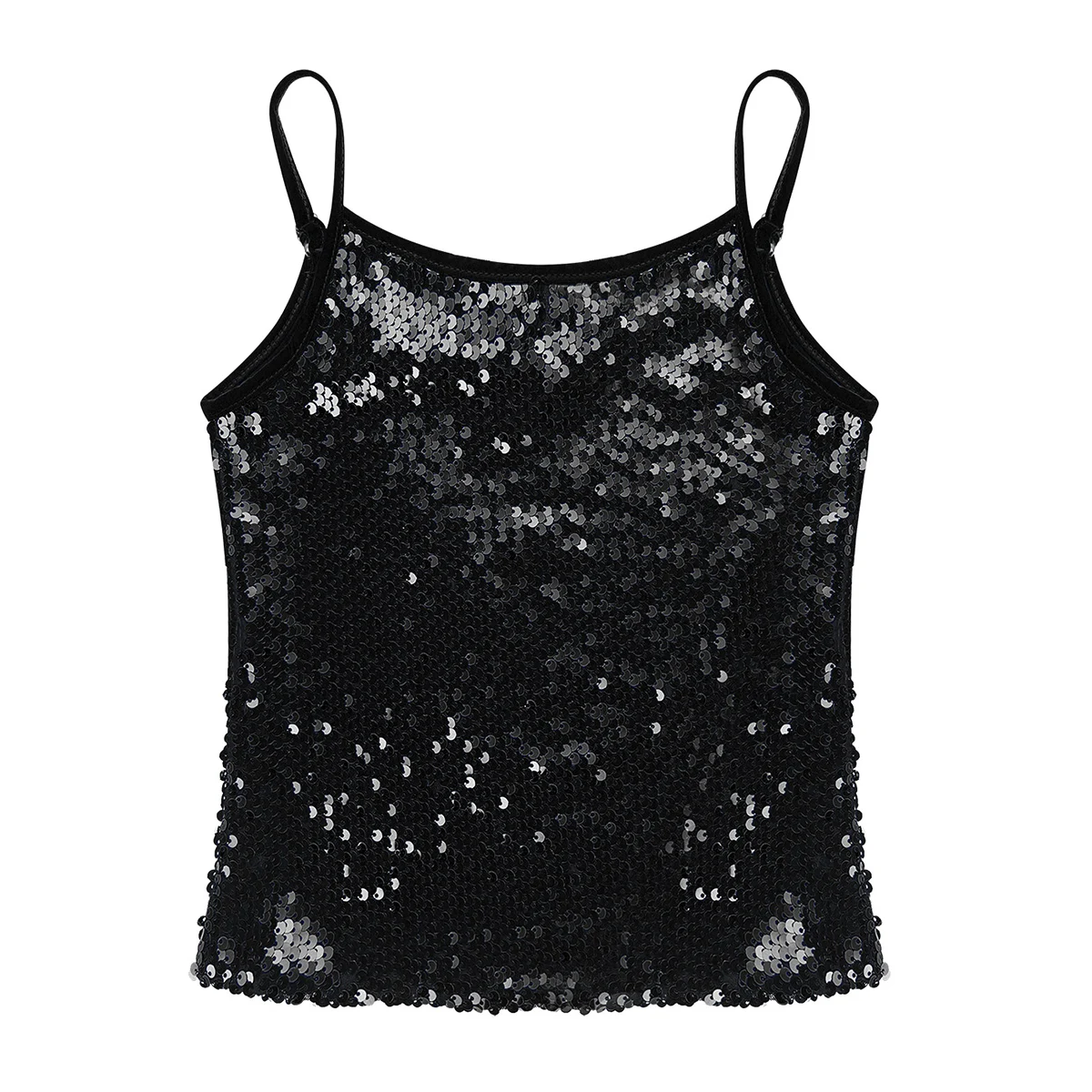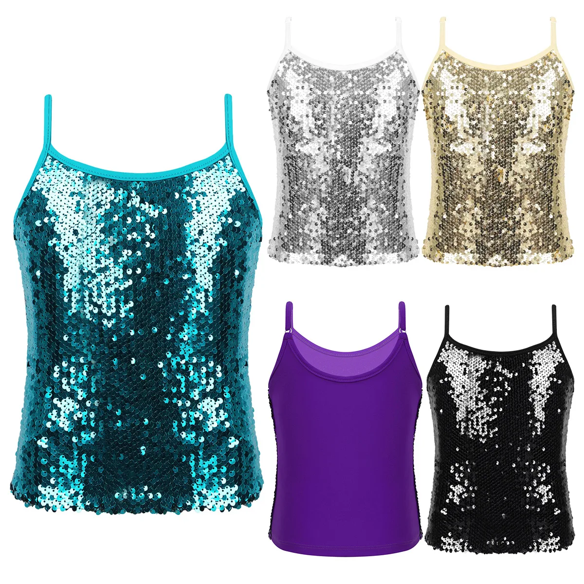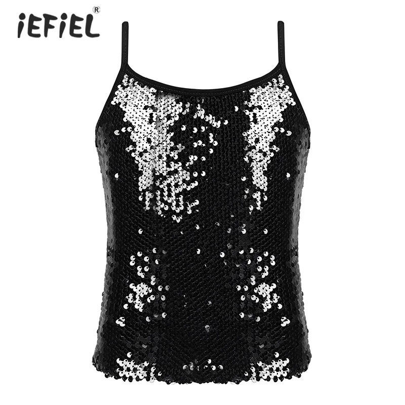 Iefielмодный детский укороченный топ для танцев для девочек, топ с блестками, майка для танцев, выступлений, детская одежда