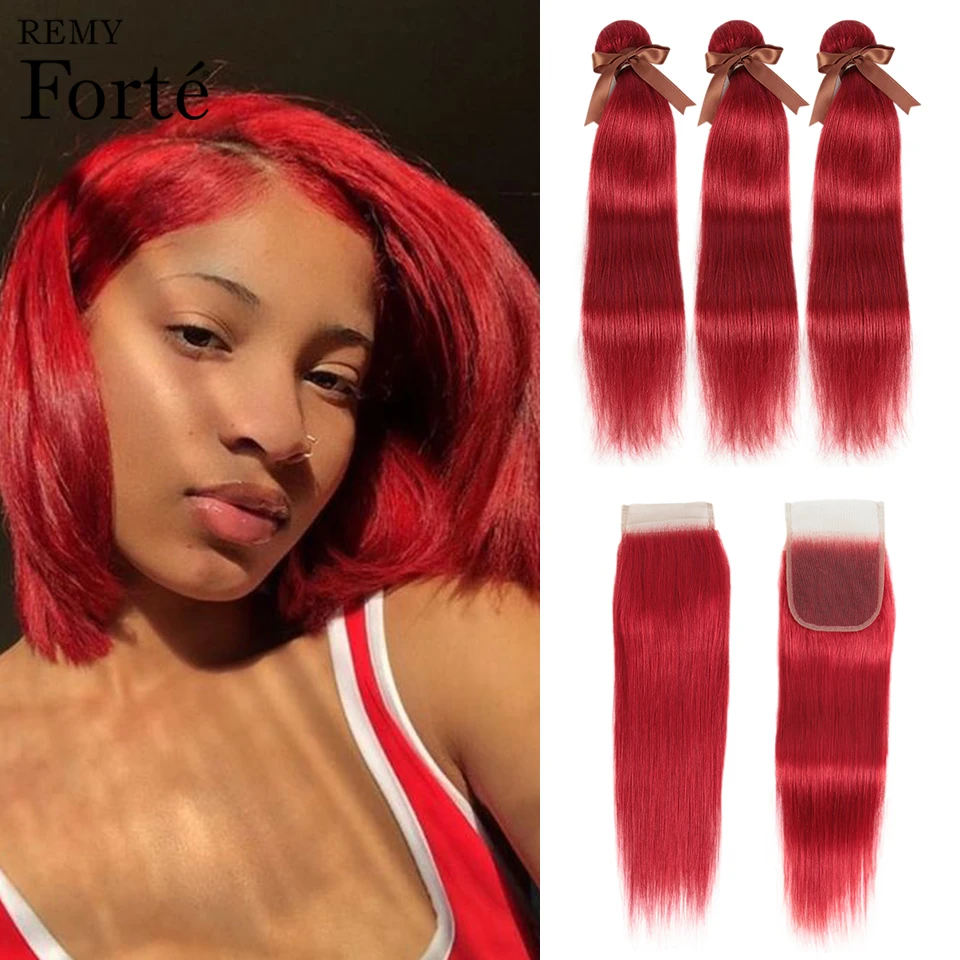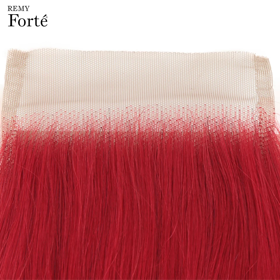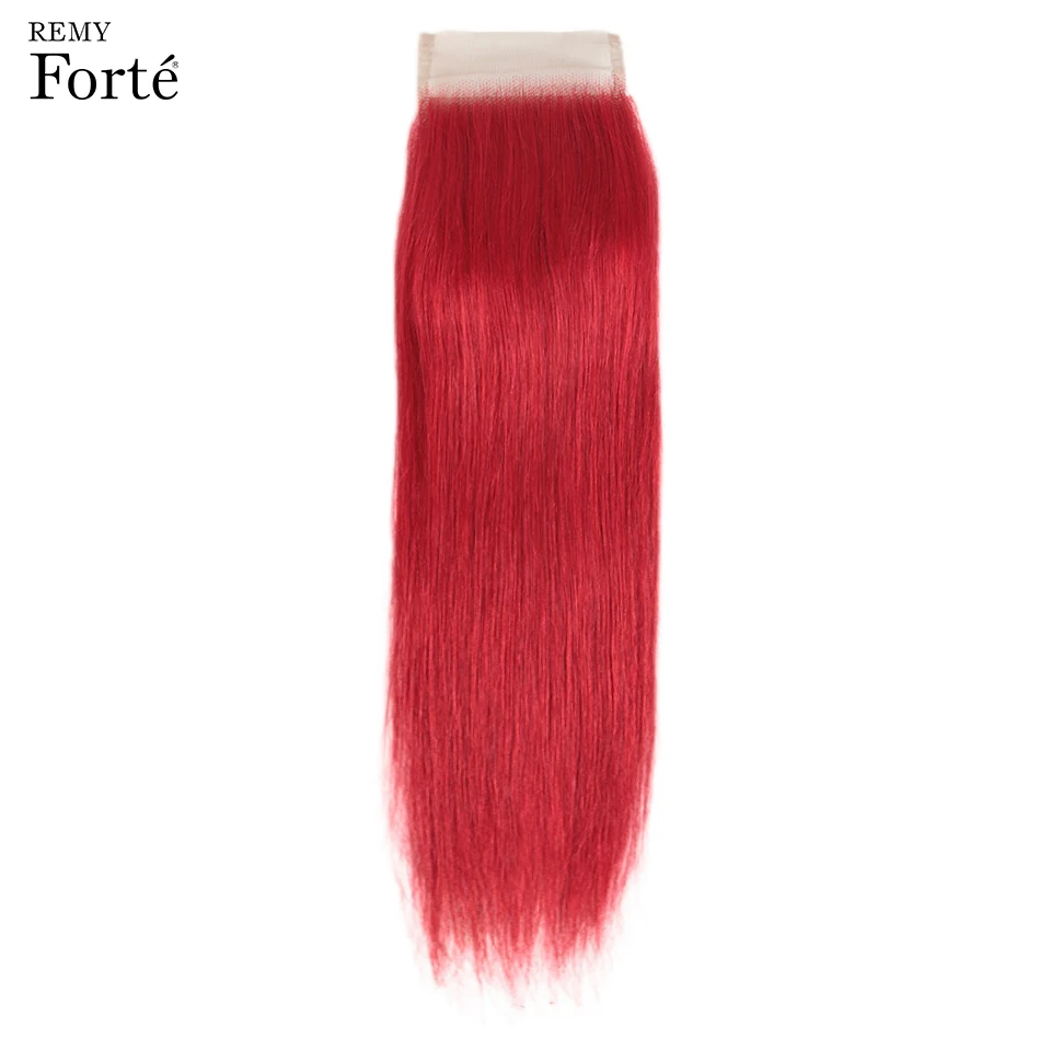 Прямые пряди для волос Remy Forte, красные пряди с закрытием, перуанские Волнистые пряди 34 пряди с закрытием