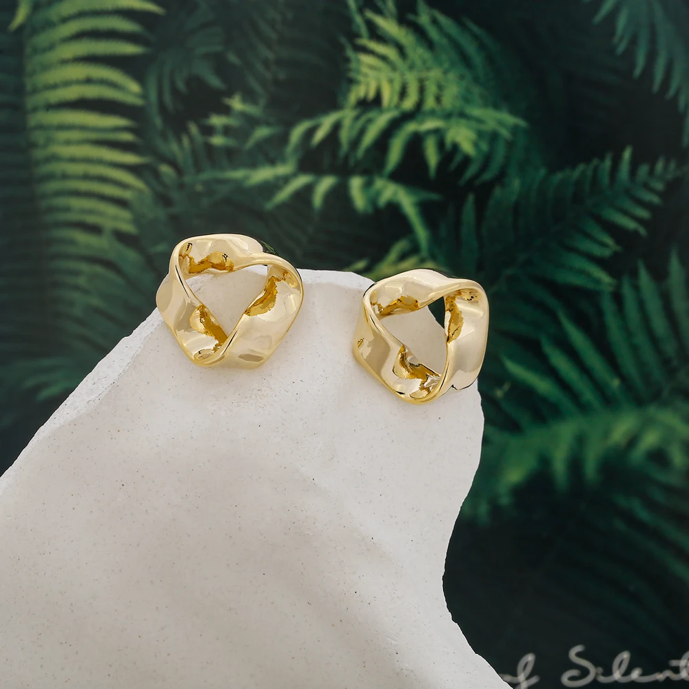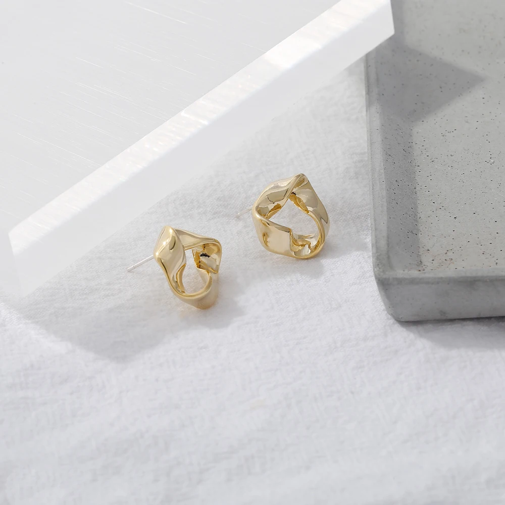 Yhpup минималистичные витые маленькие серьги-гвоздики, очаровательные металлические ювелирные изделия, корейский, геометрической формы текстурные серьги для женщин медные сережки 2021