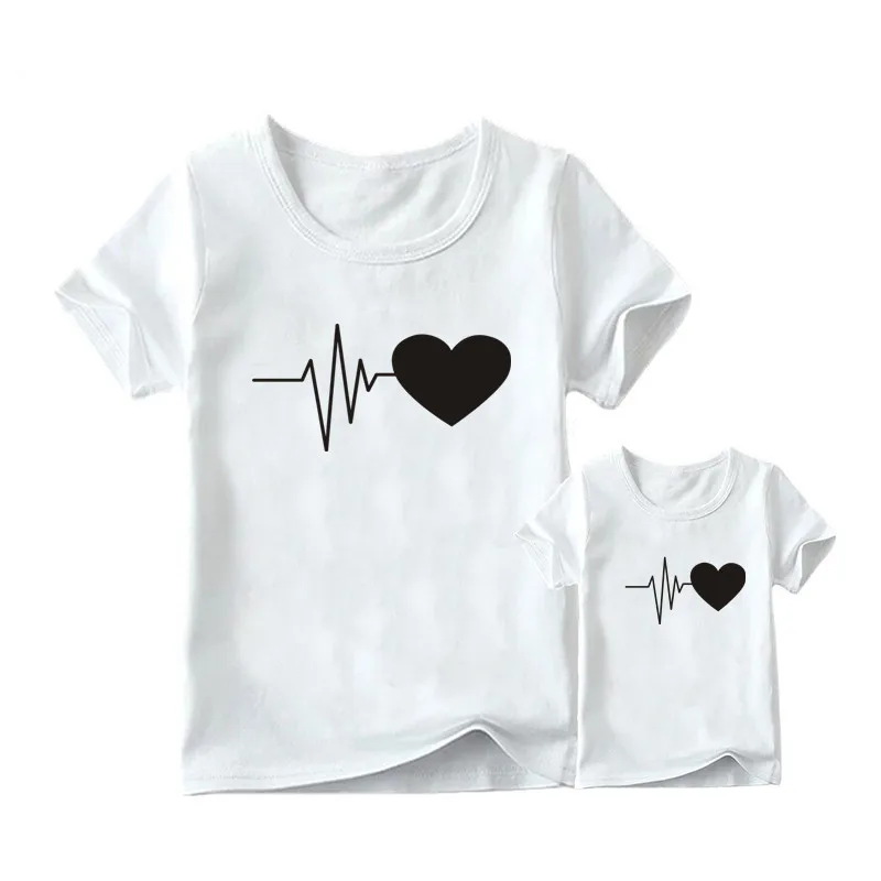 Новинка, одежда для мамы и дочки Harajuku с принтом Love, женские и детские футболки, повседневная футболка, топы, семейная Одинаковая одежда