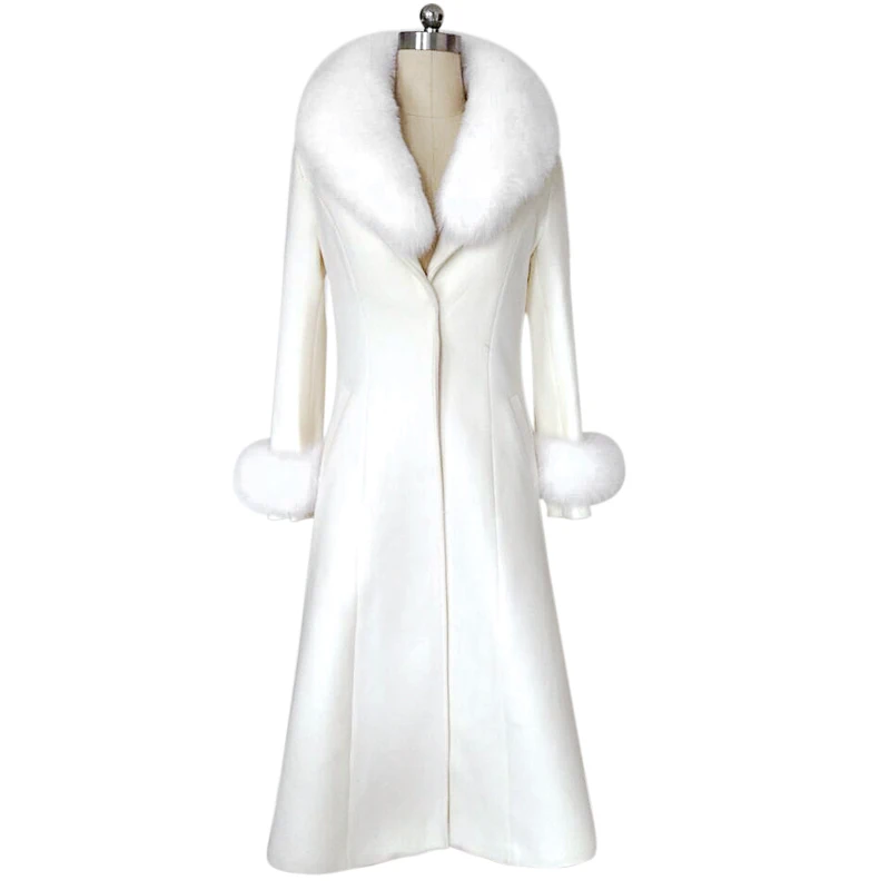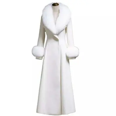 Женское шерстяное пальто, белое пальто с меховым воротником, теплая Длинная зимняя куртка, размера плюс 3XL!