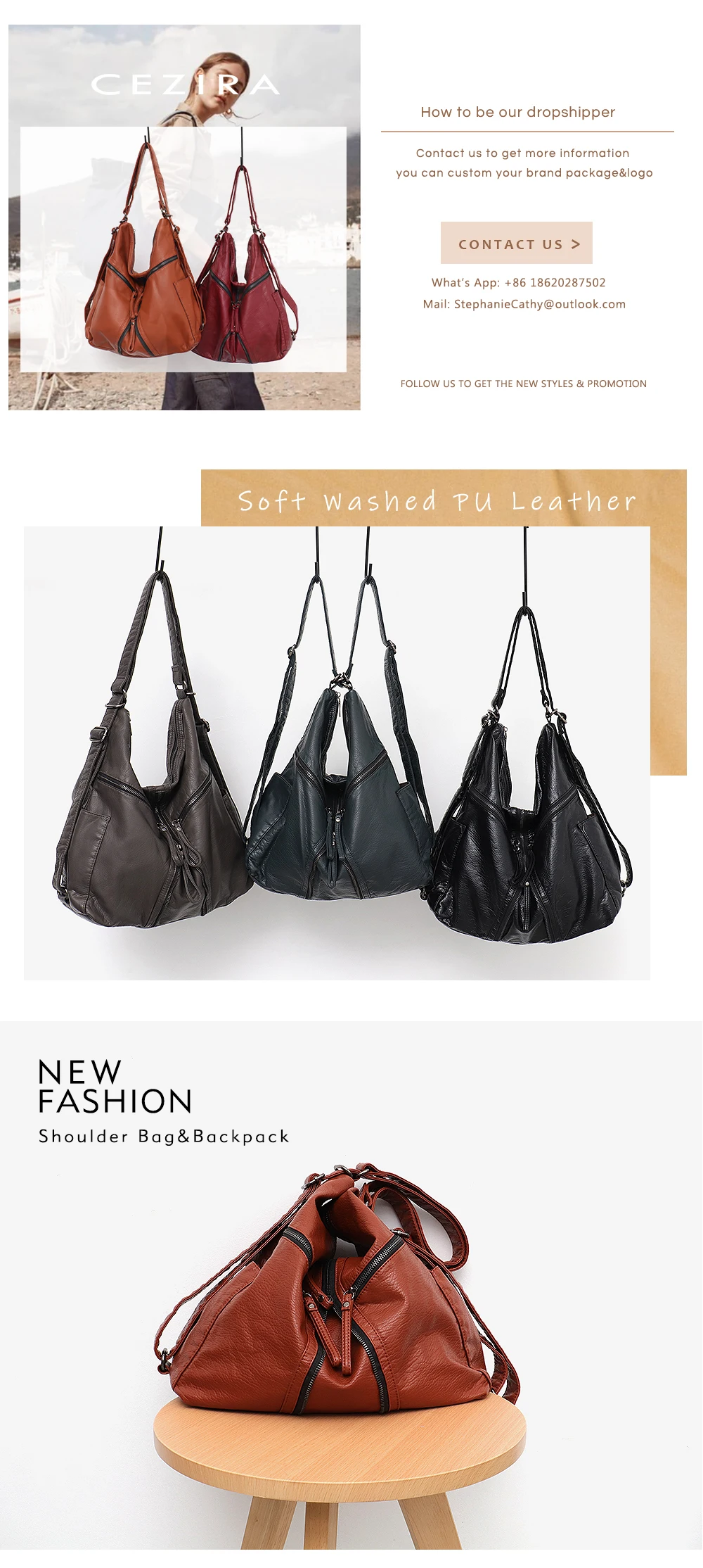 Рюкзак женский из искусственной кожи, на молнии, с отделением для ноутбука