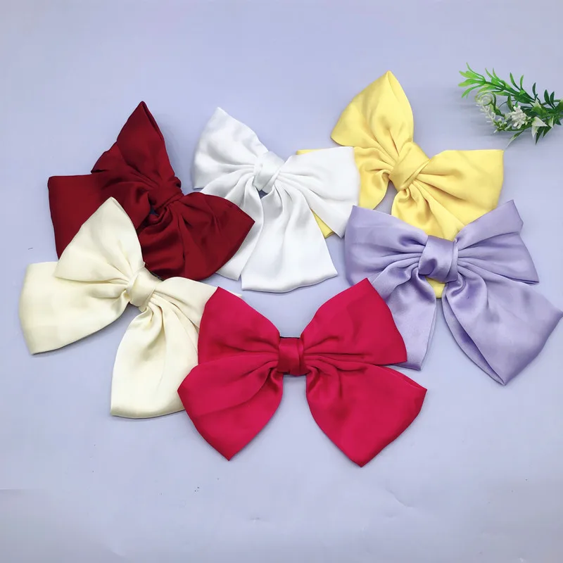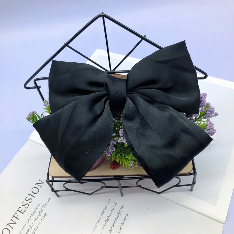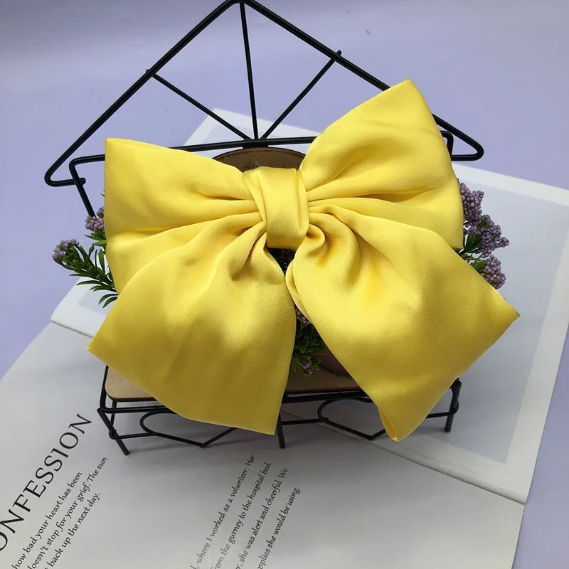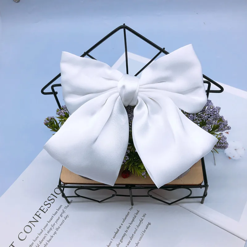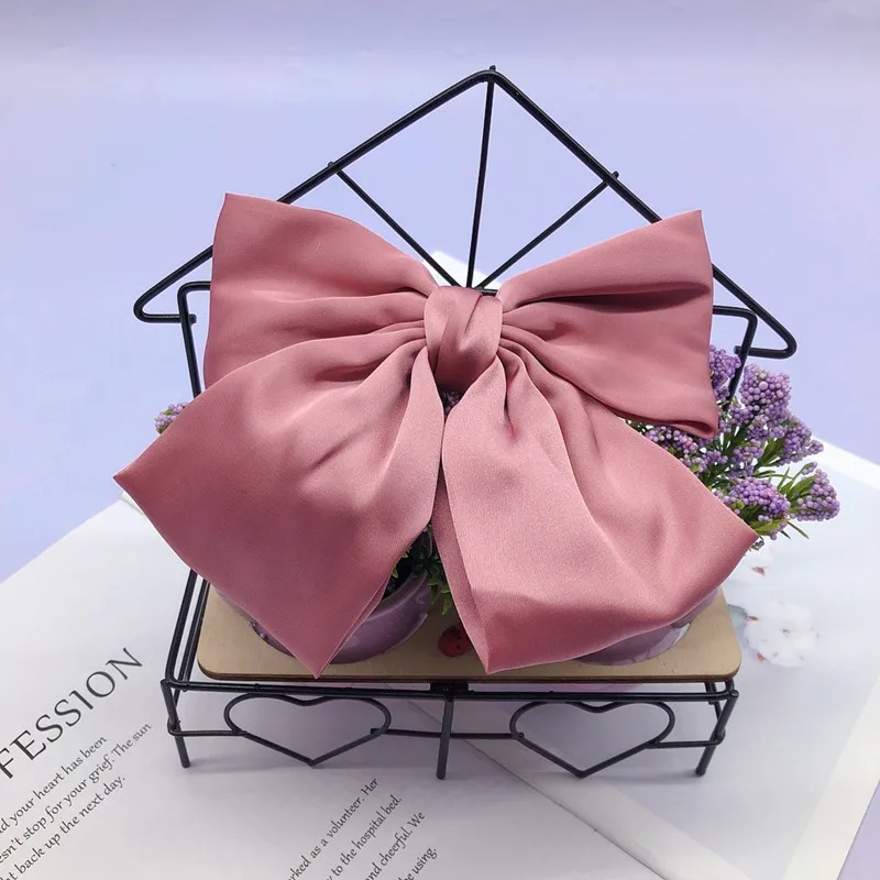Заколка для волос с бантом Женская, элегантная однотонная шифоновая лента, большой зажим с атласным бантом, трендовые аксессуары для волос