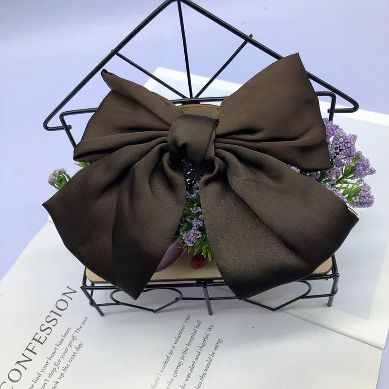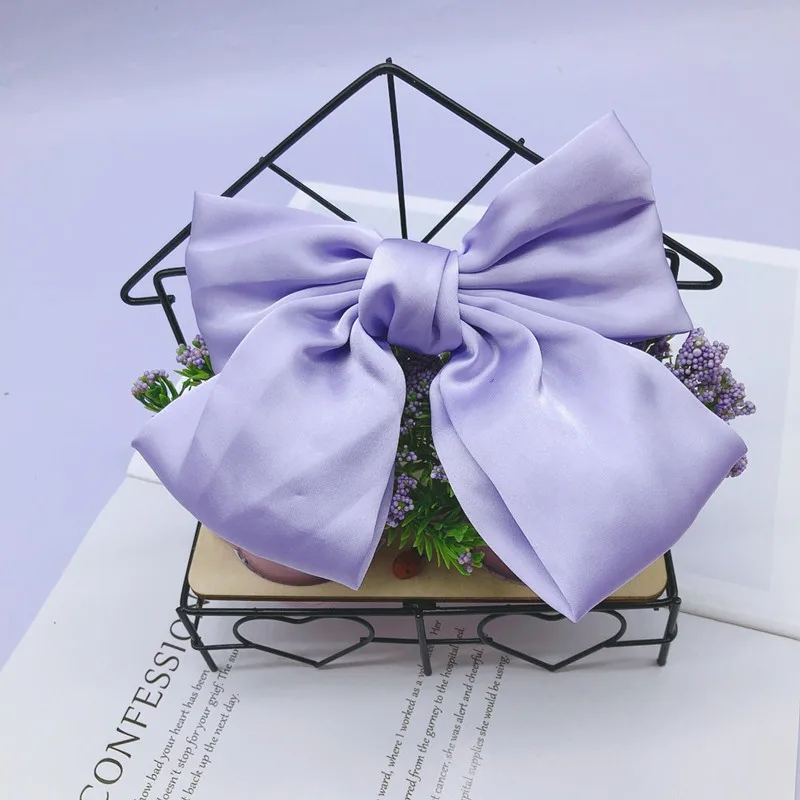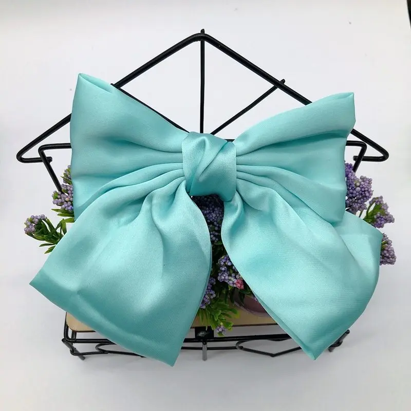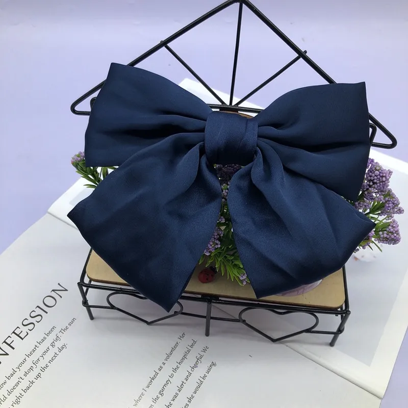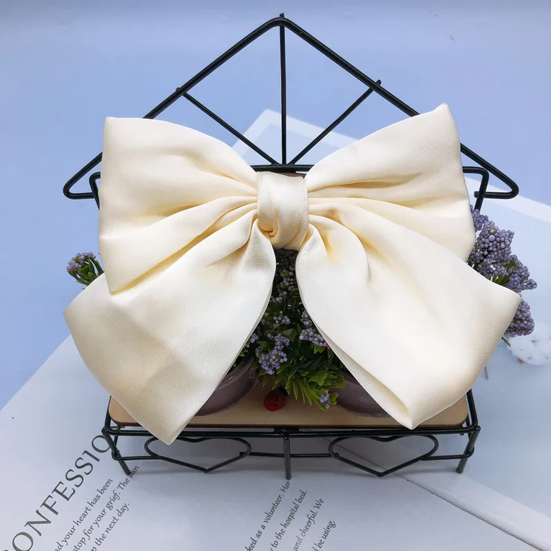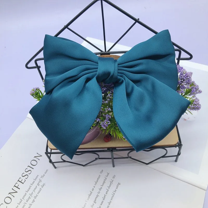 Заколка для волос с бантом Женская, элегантная однотонная шифоновая лента, большой зажим с атласным бантом, трендовые аксессуары для волос