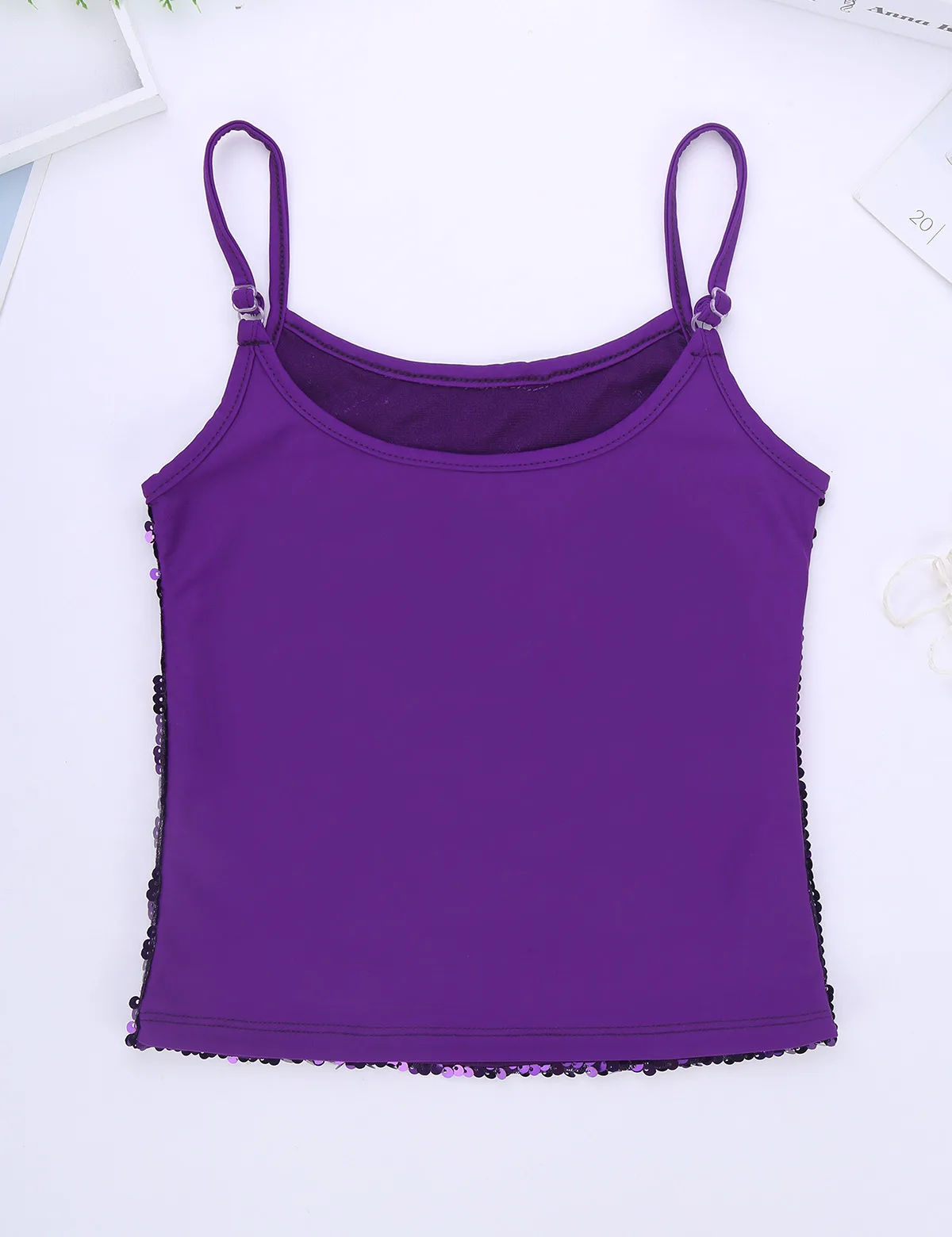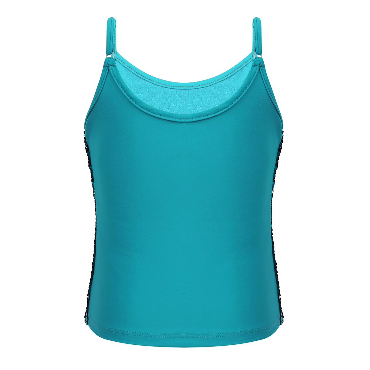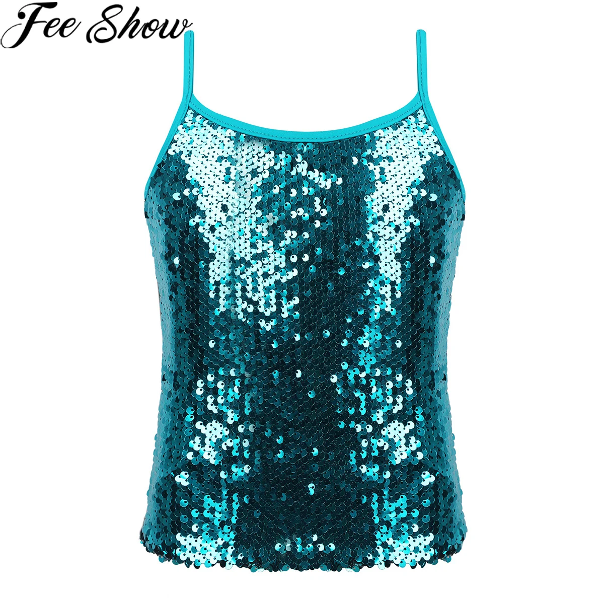 FEESHOW детская одежда для девочек, жилет для девочек, блестящие пайетки топы, майка, топ, балет, танец, сцена, танцевальная одежда, костюм
