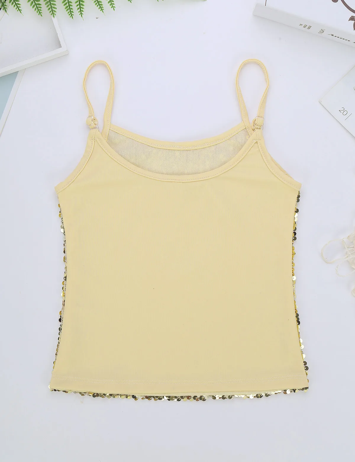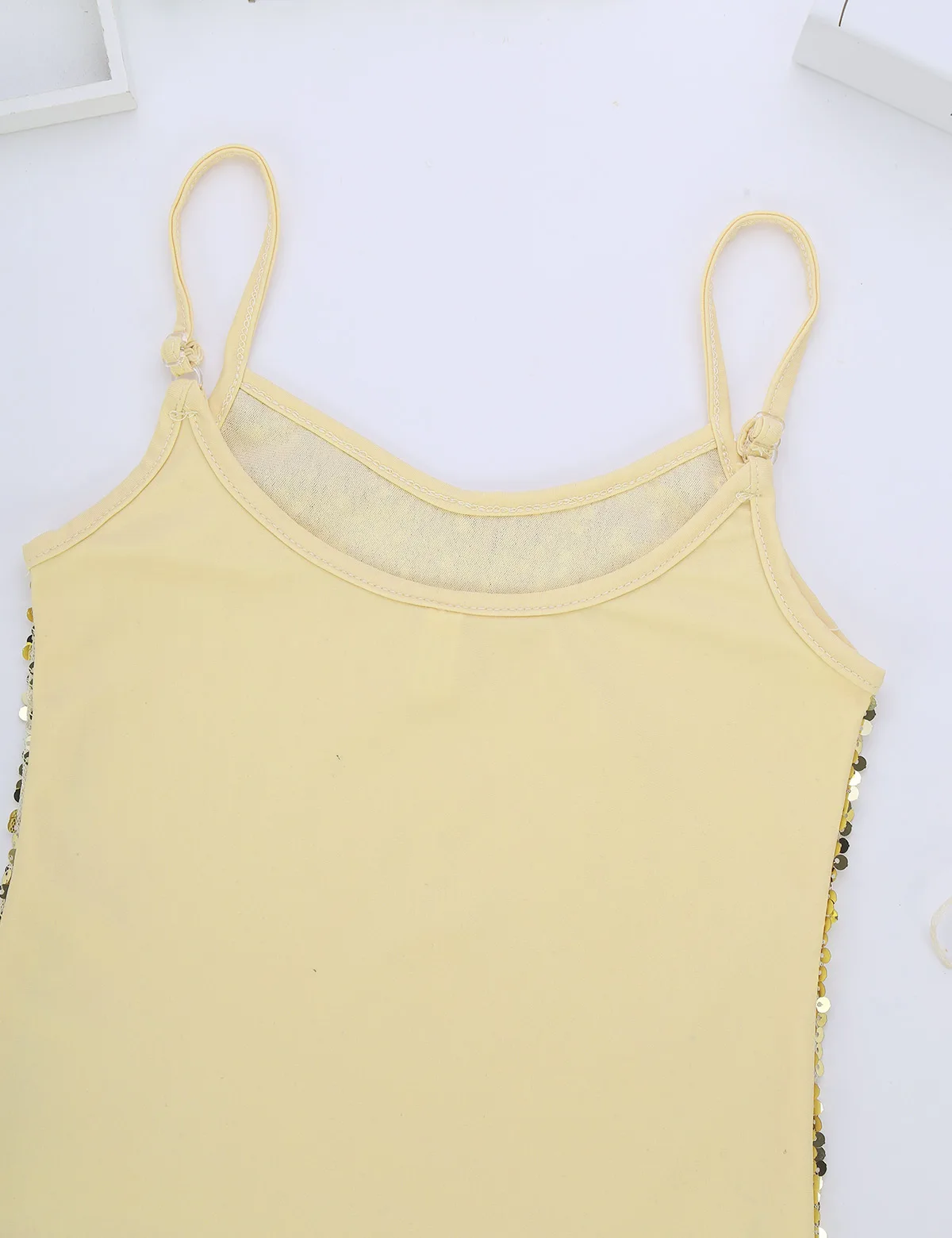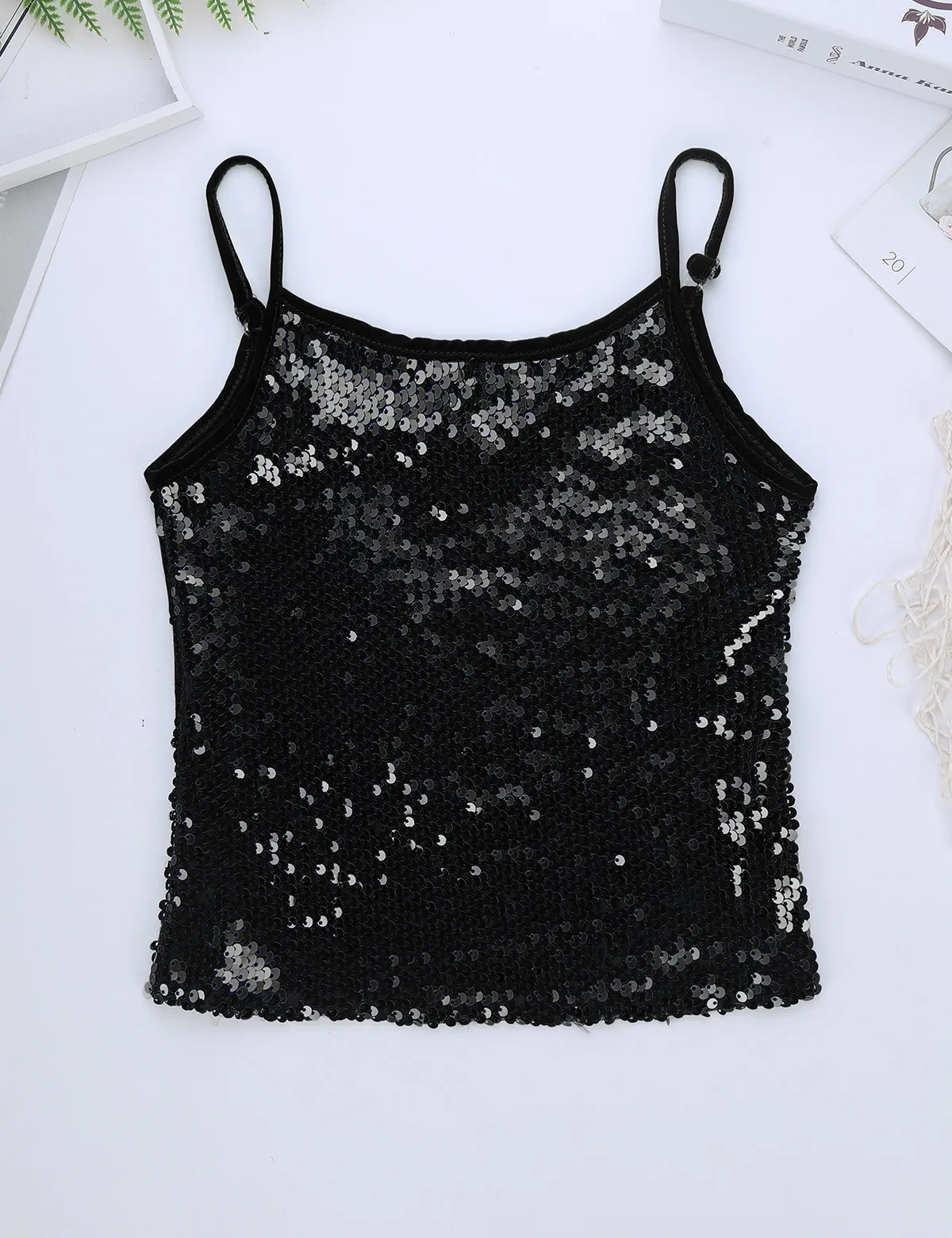 FEESHOW детская одежда для девочек, жилет для девочек, блестящие пайетки топы, майка, топ, балет, танец, сцена, танцевальная одежда, костюм