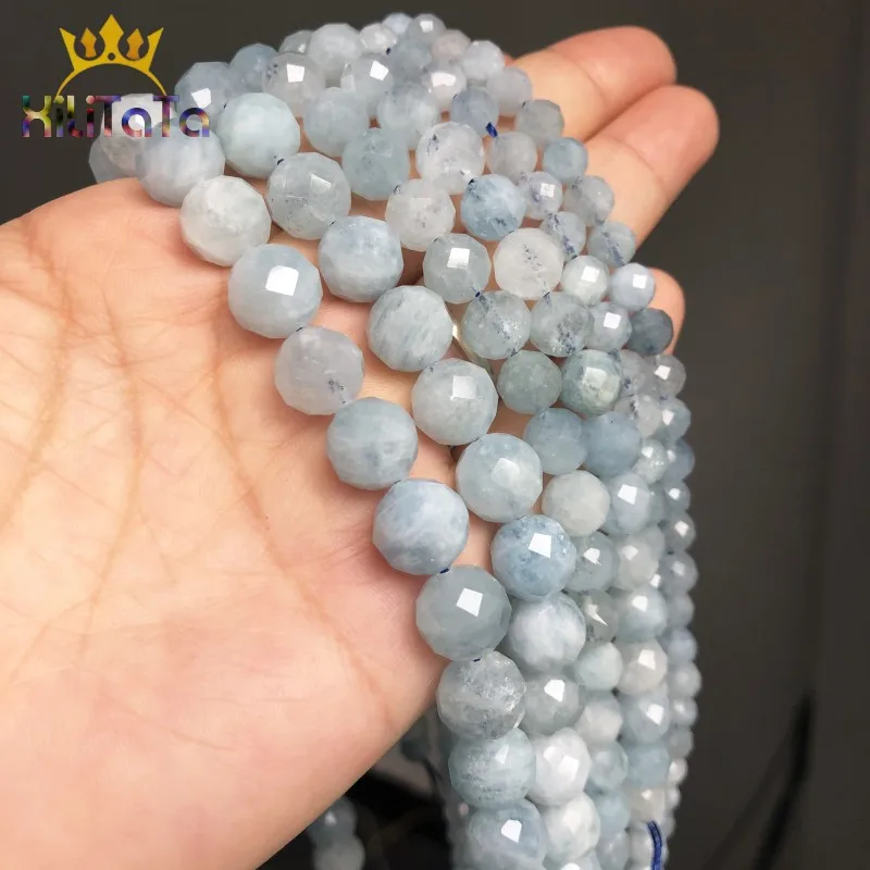 Бусины из натурального камня с гранями аквамарины, россыпью, для изготовления ювелирных изделий сделай сам, браслетов, серег, аксессуаров, 15 дюймов, 6, 8, 10 мм