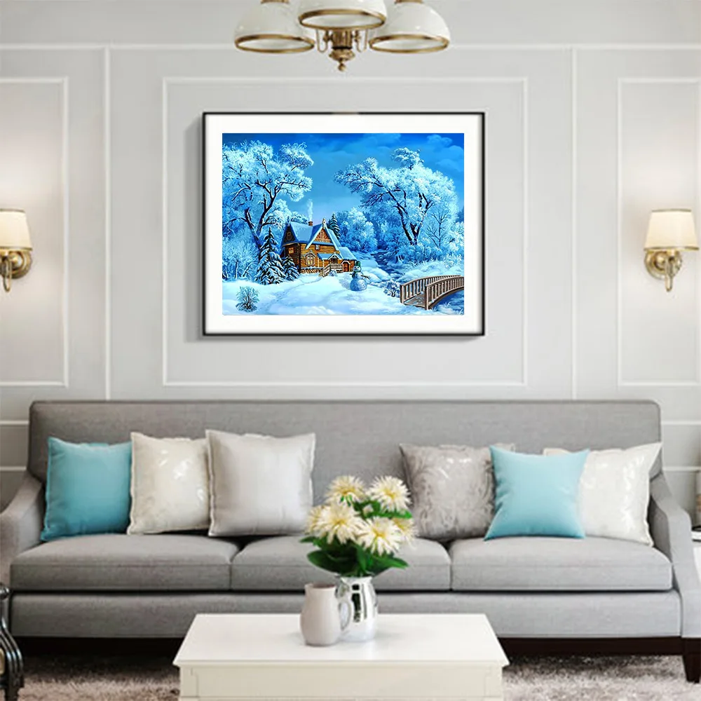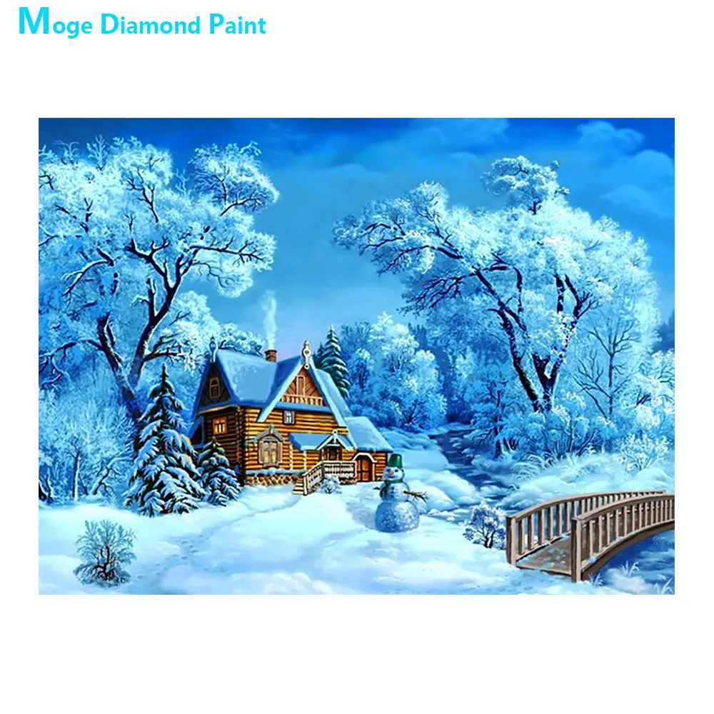 Снежный лес домик Алмазная картина круглая полная дрель живописный ...