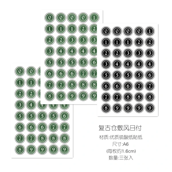 3 листа А6 Размер винтажные арабские цифры 1-9, винтажные цифры метки круглые наклейки декоративные канцелярские наклейки