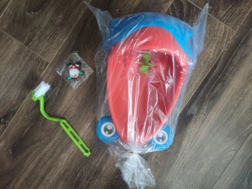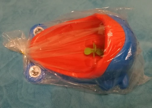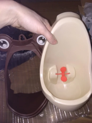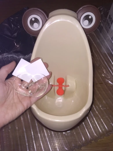 Удобный писсуар! Сынуля сразу заинтересовался. Пару уроков и успешное использование. Без страха крепить на присоски можно только к стеклянной поверхности. Нашего лягушонка мы повесили к деревянной двери туалета на саморез, петелька для которого предусмотрена производителем. Упаковка очень серьезная. Надувная подушка безопасности. Маленький сувенирчик к Новому году. За это отдельное спасибо продавцу! Вроде мелочь, но чертовски симпатичная и приятная! Доставка меньше двух недель в Челябинскую область. Получила смс о том, что можно посылку забрать на кассе в пятерочке по такому-то адресу. Удобно. Почта до 17 часов работает, а пятерочка до 23... Товар и магазин однозначно рекомендую!