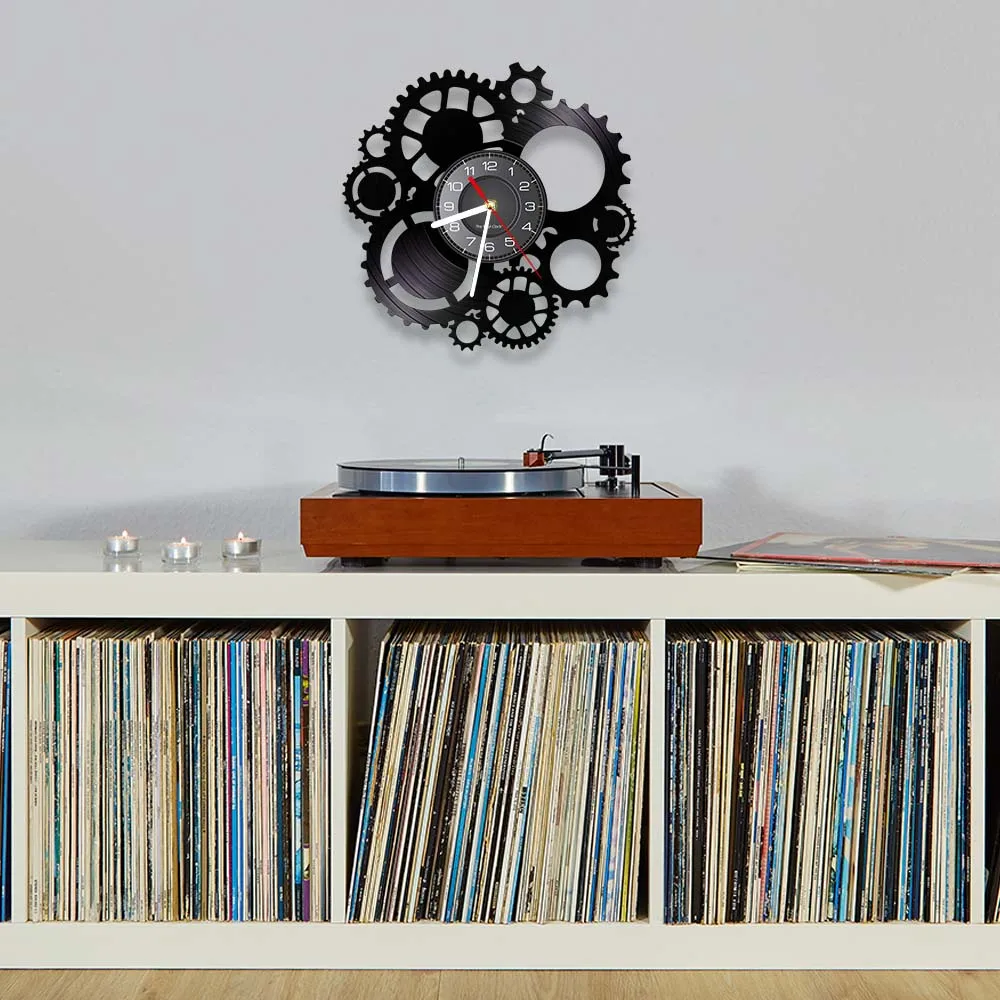 Винтажные настенные часы с виниловой пластинкой