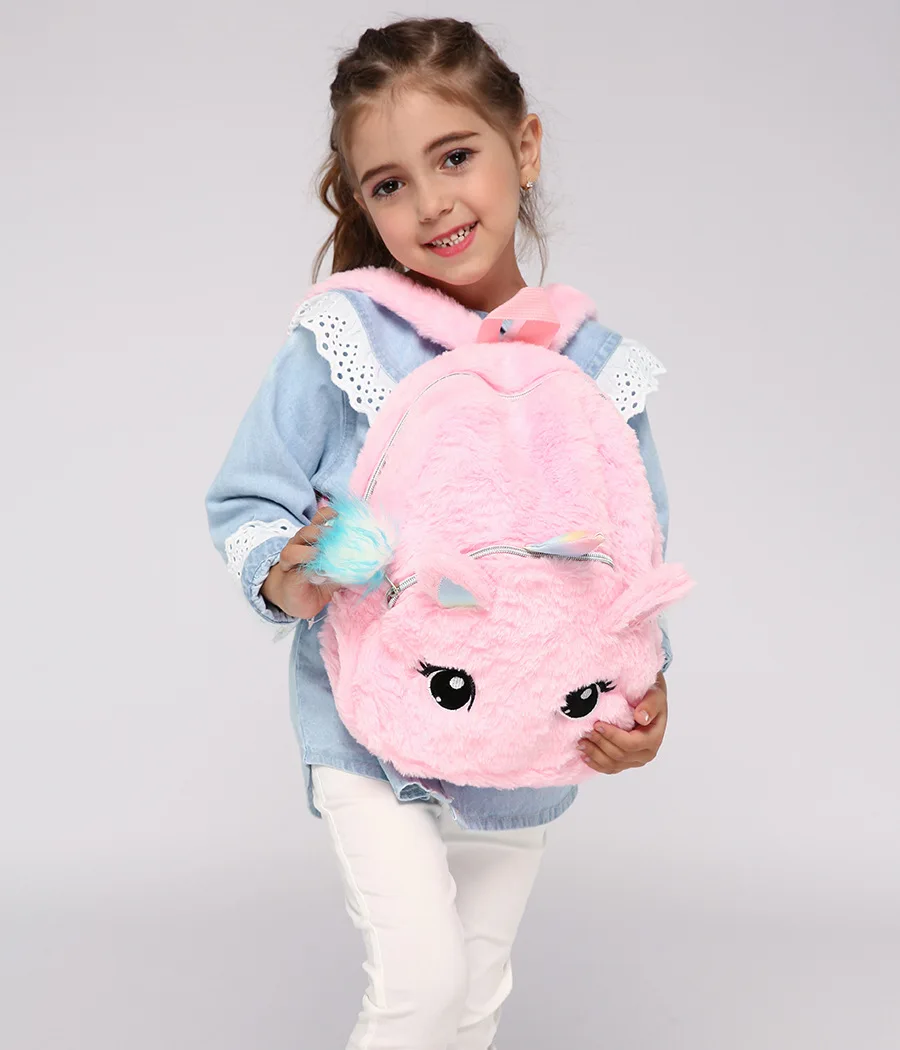 Рюкзак школьный плюшевый для девочек, с изображением единорога