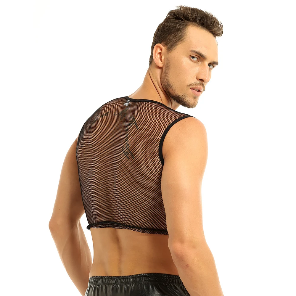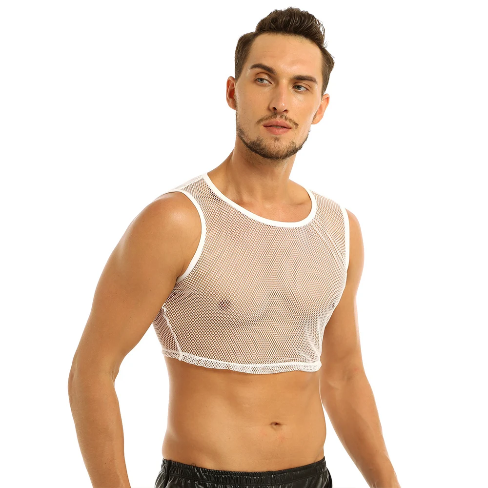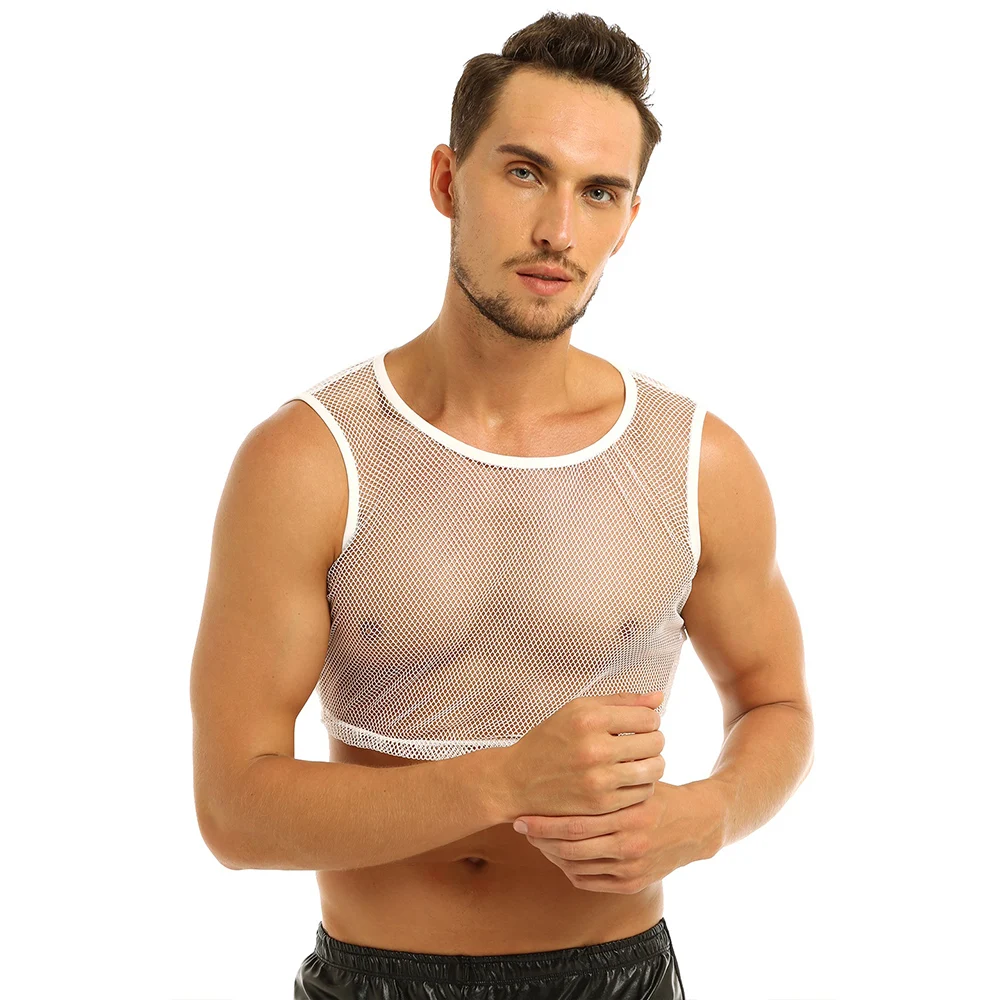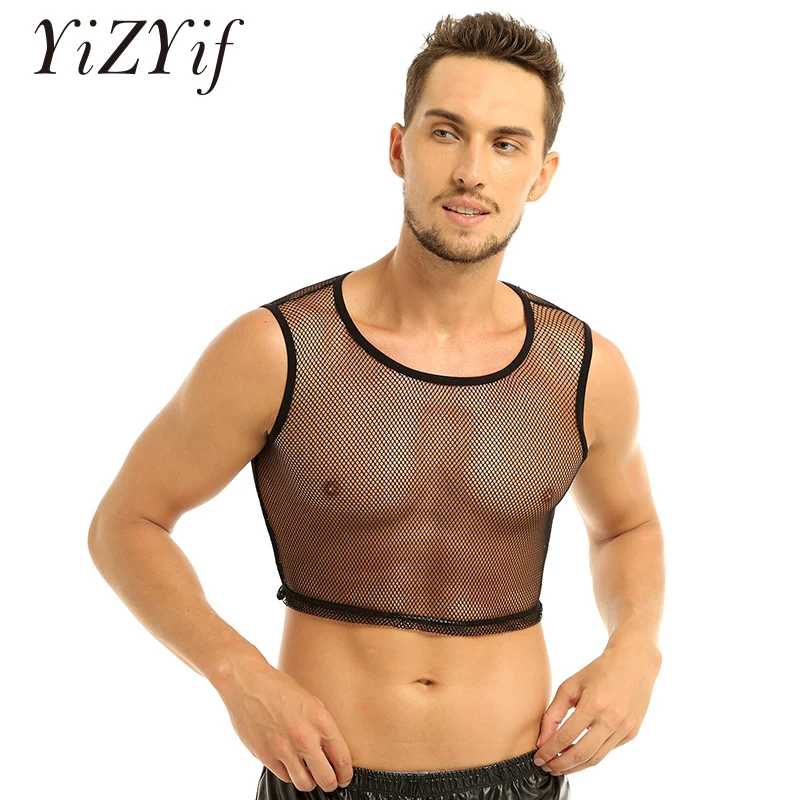 YiZYif ажурные из сетчатого материала; На бретелях; Топы из прочного материала Цвет сексуальное платье без рукавов прозрачная сетка Muscle Tank ажурные мужской жилет одежда для взрослых