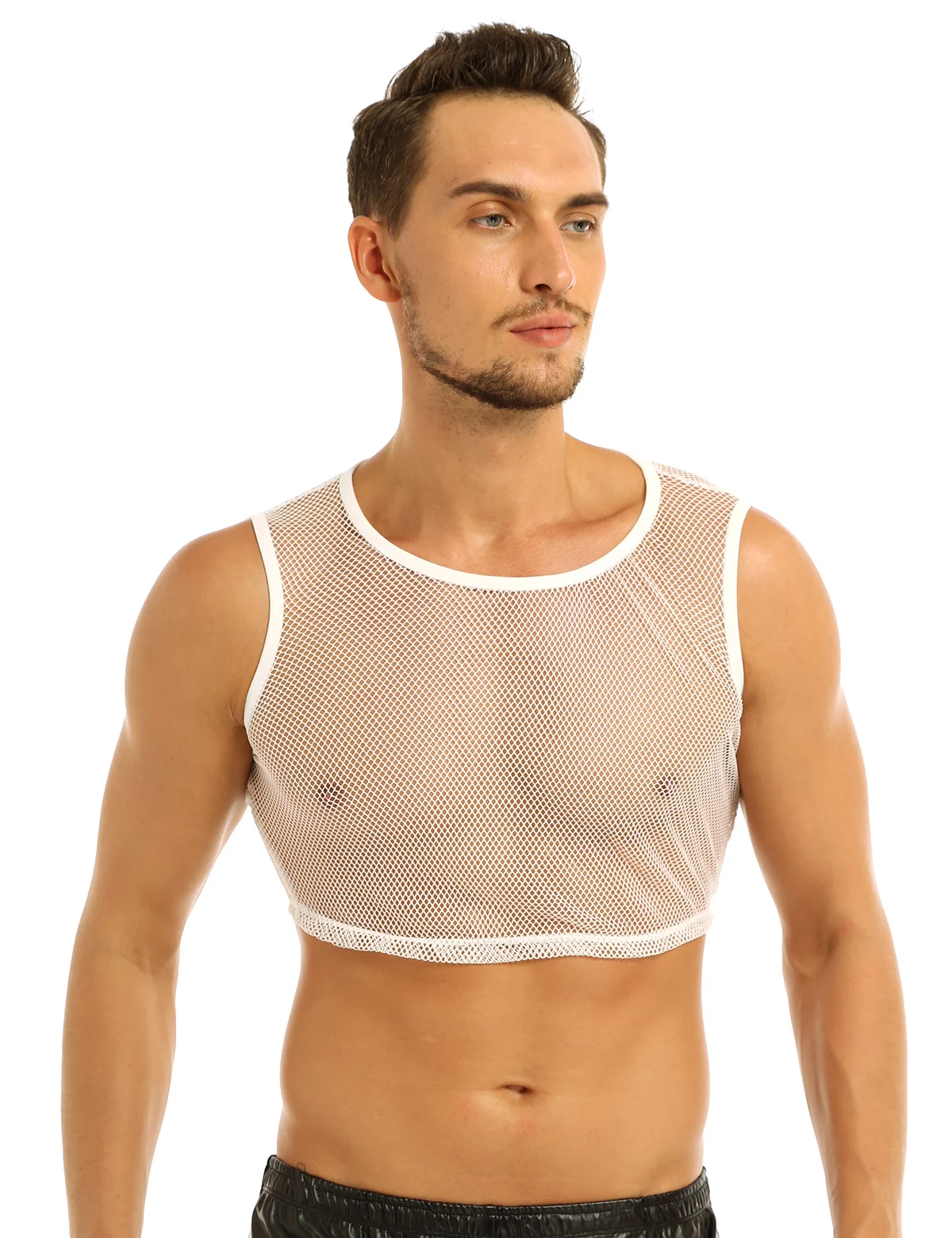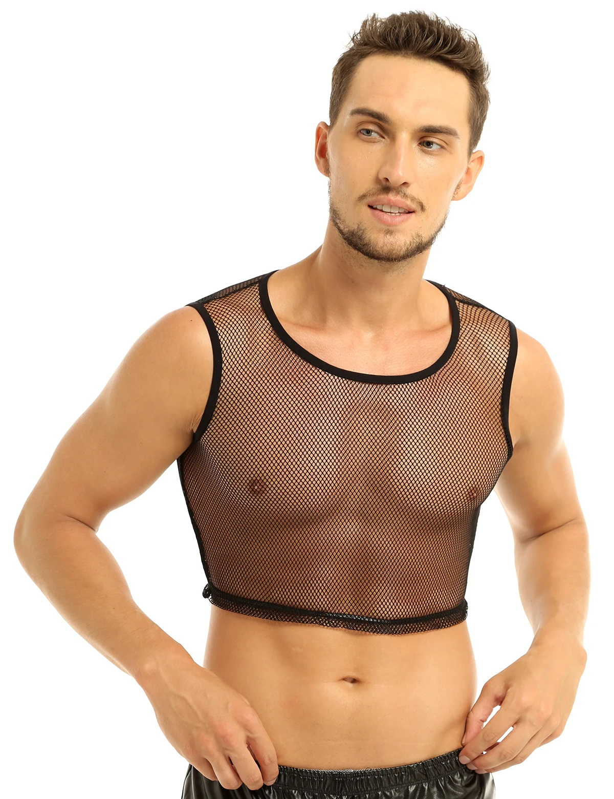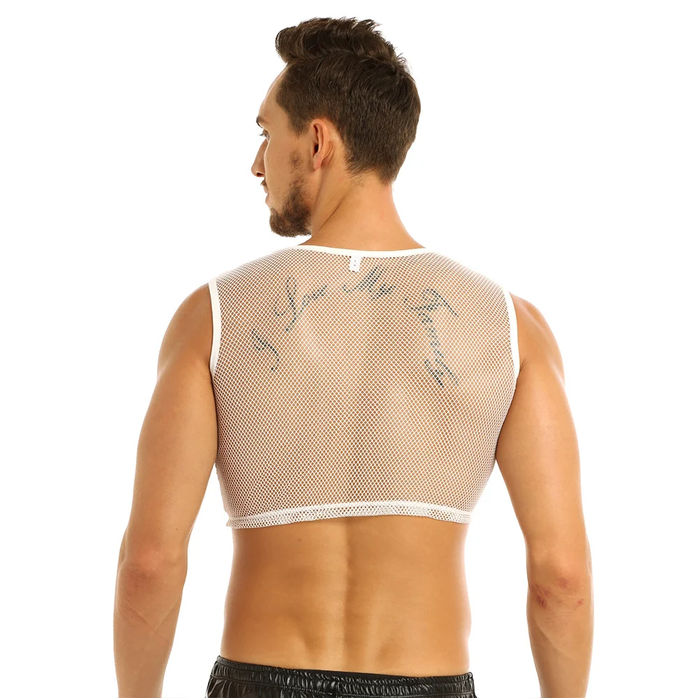 YiZYif ажурные из сетчатого материала; На бретелях; Топы из прочного материала Цвет сексуальное платье без рукавов прозрачная сетка Muscle Tank ажурные мужской жилет одежда для взрослых