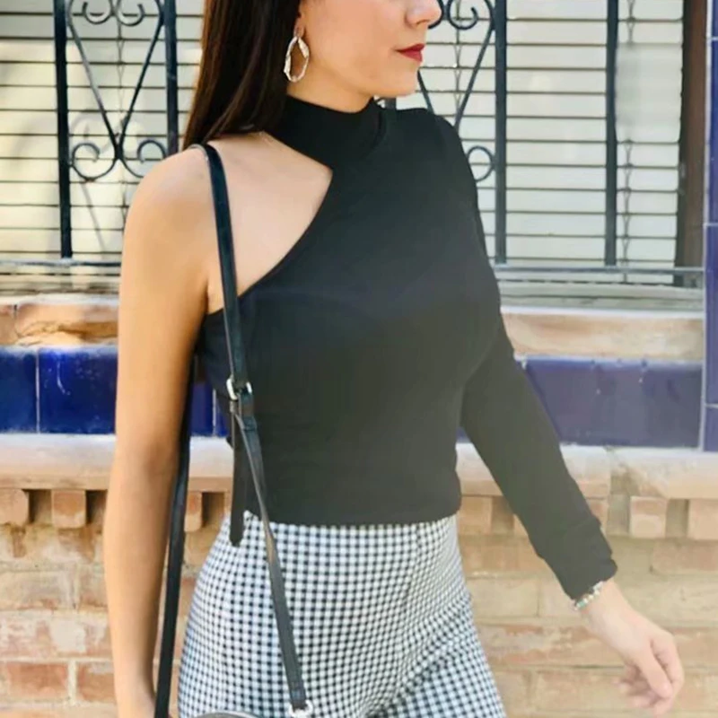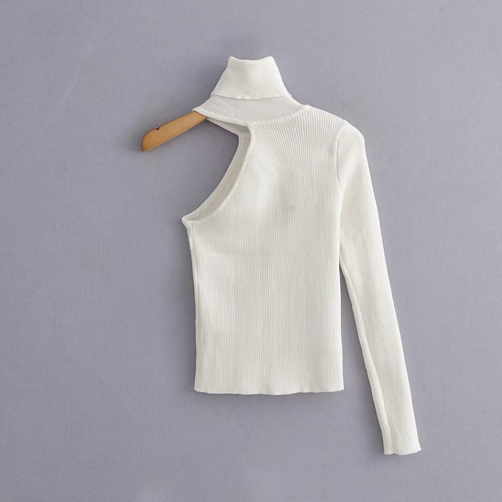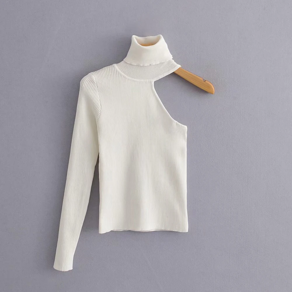 Женская водолазка на одно плечо, модный вязаный свитер, Элегантные вязаные свитера, тонкие милые пуловеры, женские топы