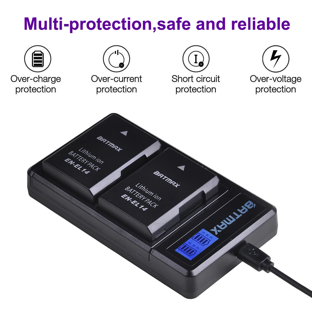 Batmax EN-EL14 EN-EL14A EL14 Батарея + ЖК-дисплей USB Dual Зарядное...