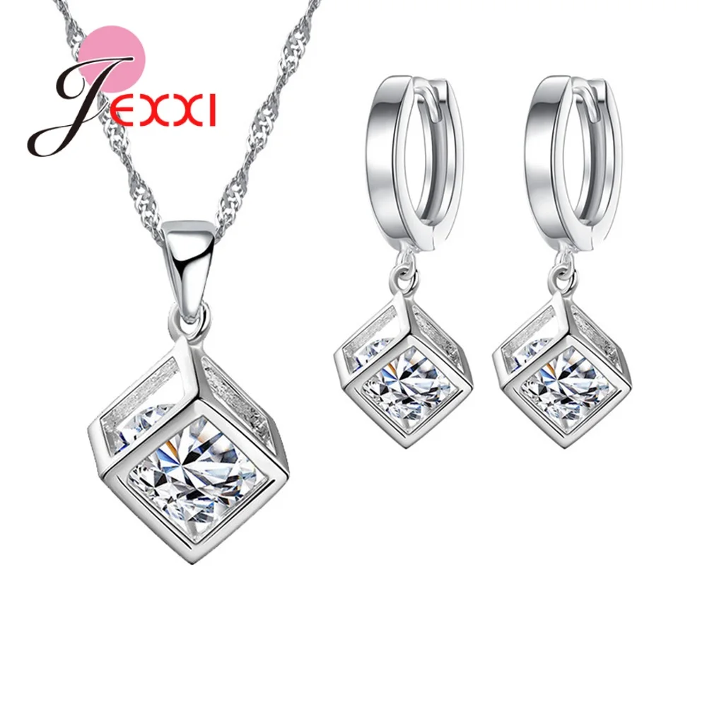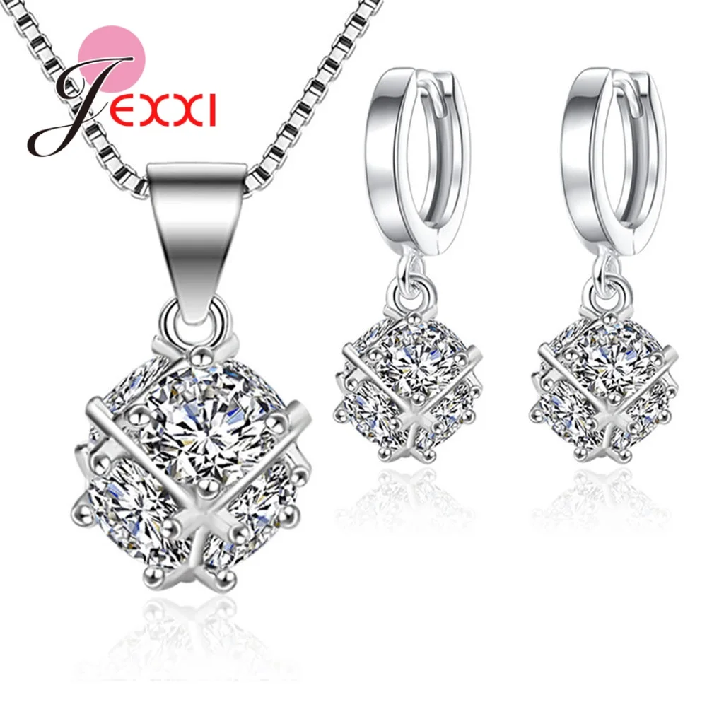 Женский комплект из колье и серёг, из серебра 925 пробы