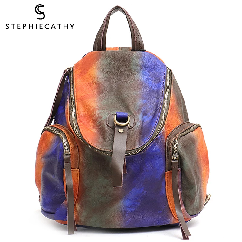 Модный стильный школьный рюкзак с откидной крышкой SC, Разноцветные сумки на ремне из искусственной кожи для женщин, повседневный ранец