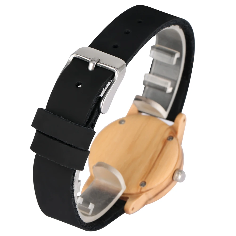 Прочный коричневый чехол, деревянные часы для женщин, практичный черный кожаный ремешок, дисплей, чехол, женские деревянные наручные часы zegarki damskie