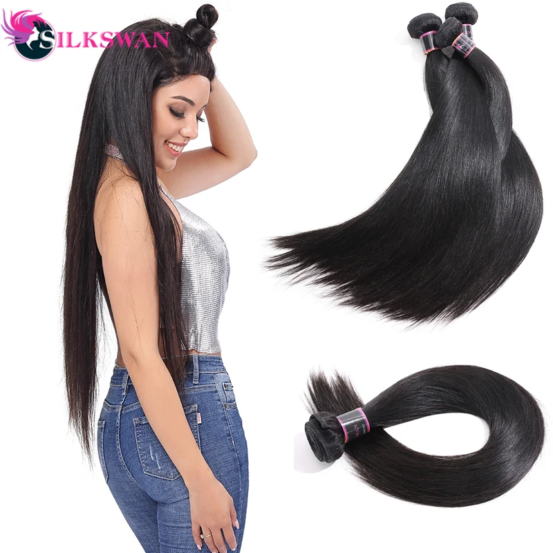 Silkswan человеческие волосы, прямые Пряди 10-40 дюймов, 34, 36, 38, 40, 50 дюймов бразильские Волосы Remy уток натуральный черный наращивание волос Для чернокожих Для женщин
