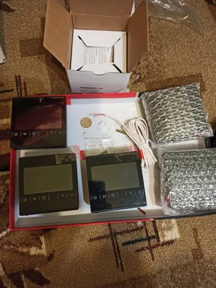 Продавец 4 заказа отправил одной посыклой В Литву. С таможней проблем не было. Всё пришло целое. Огромный МИНУС за подключение внешнего датчика температуры - на клеммах 125 В переменки, при коротком на землю СГОРАЕТ ВСЁ. Так что подключать через реле утечки. Оценку не стал ставить ниже из-за цены.