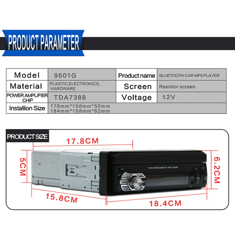 Спецификация: Режим питания: 12 В постоянного тока Размер экрана: 7 дюймов Цвет экрана: 260000 цветной экран Поддержка видео формата: RMVB/AVI/MPG/MKV/MPG/MP4/WAV и т. д. Тип карты памяти: sd-карта Отношение сигнал-шум: 90 дБ Дополнительные характеристики: gps-навигация, Bluetooth, функция заднего хода Формат воспроизведения видео: Realplay, MPEG-4, FLV, RMVB, AVI, MPG, MOV, другие Формат воспроизведения аудио: MP3, APE, FLAC, WMA, WAV, другие с пультом дистанционного управления