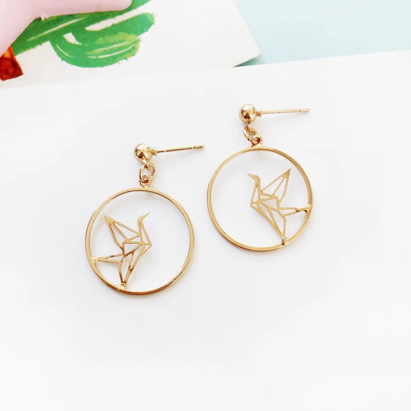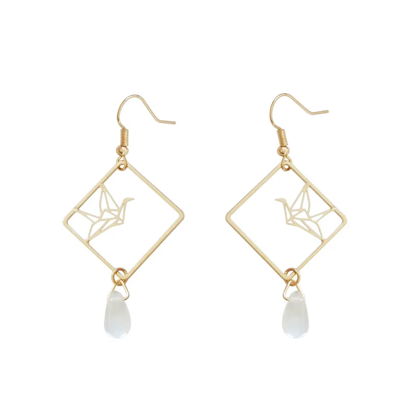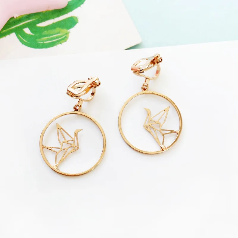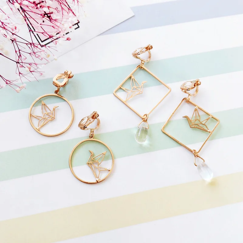 DoreenBeads модные серьги-Клипсы из Золотого Сплава Геометрические Квадратные Круглые Подвески романтические модные серьги с бумажным журавлем, 1 пара