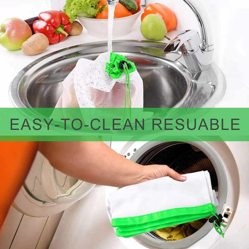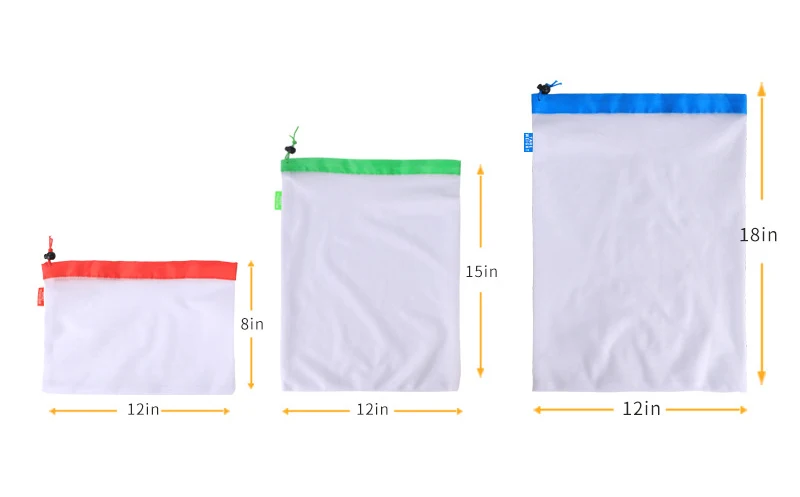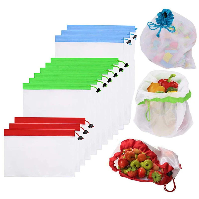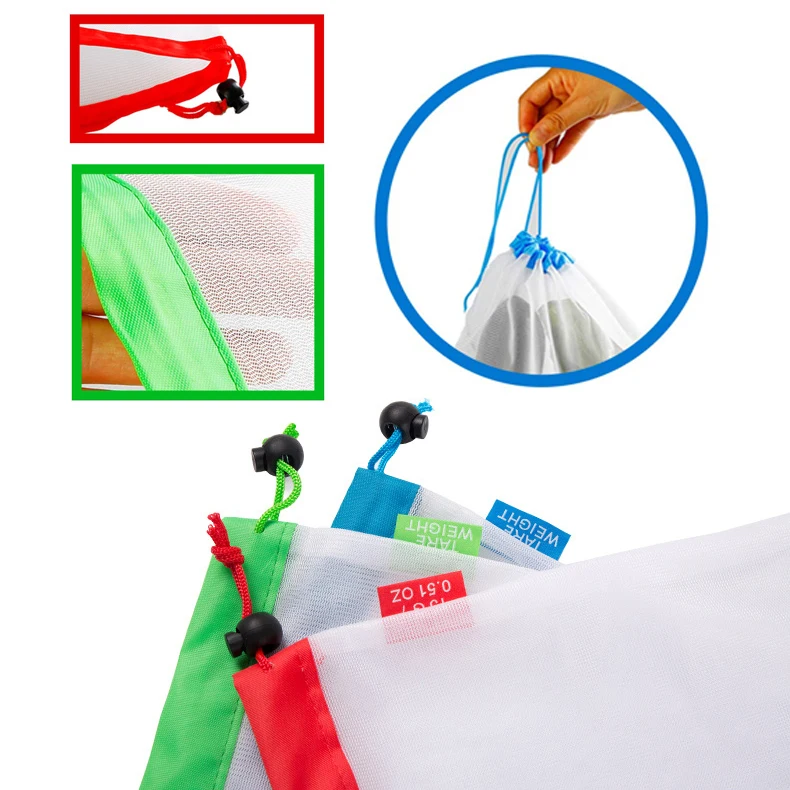 Многоразовые сетчатые продуктовые сумки, набор из 12 экологически чистых сетчатых сумок с тарифными бирками и шнурком, для фруктов, овощей и игрушек