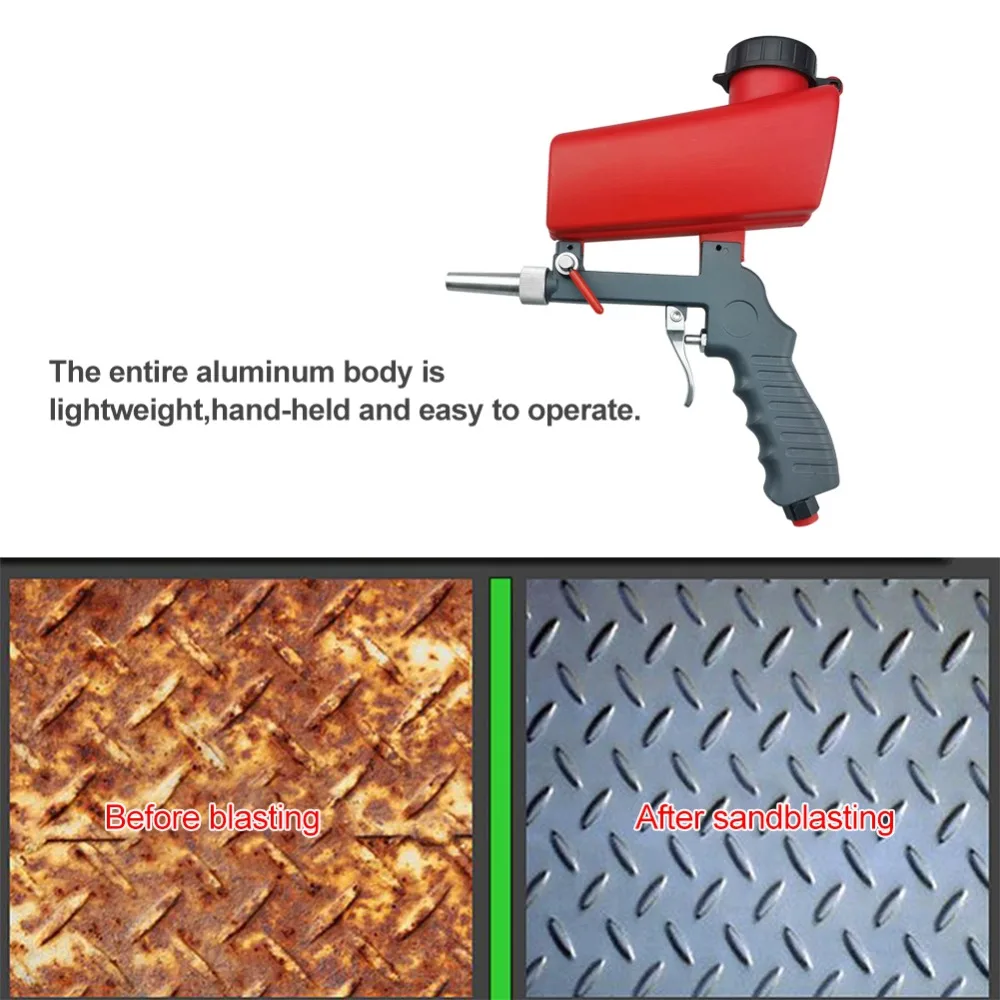Стиль B-Особенности:Светильник легкий алюминиевый материал, простота в эксплуатации, светильник вес полностью алюминиевом корпусе фюзеляжа, ручной, просты в эксплуатации.Пневматический Пескоструйный пистолет может регулировать скорость потока пескоструйной обработки, специально для различных светильник и небольших металлических углов, полировка распылением, основной край, бандажные детали удаления ржавчины, меховая кромка, детали удаления ржавчины.