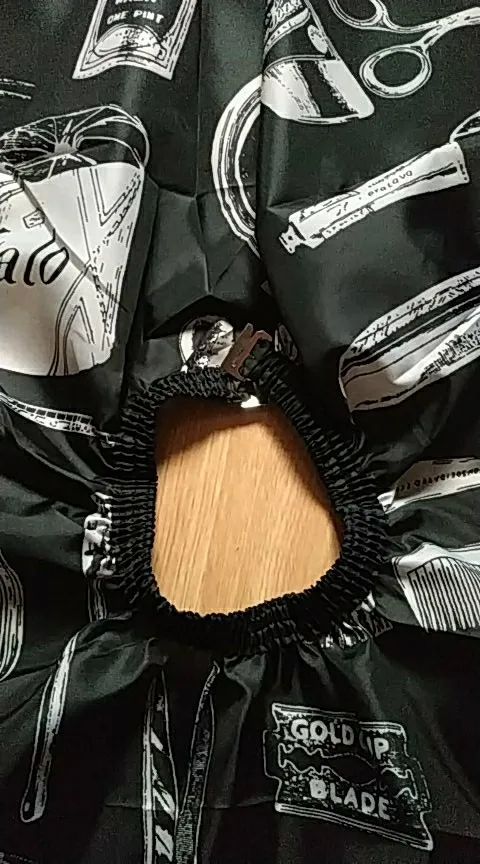 пенюар пришел на резинке с двумя железными застёжками. по отзывам читала, что некоторые "олени" жаловались, что неправильно расположены застёжки - это бред! они специально так пришиты, чтобы с обоих сторон резинки фиксировать обхват шеи. кроме того, кто-то жаловался, что размер маленький и у "нормального" мужика плечи не покрывают - это бред! у моего мужика размер 54 (КМС по пауэрлифтингу) и прекрасно на нем село, да ещё и ребенок спрятался под пеньюаром. ещё переживала, что ткань без пропитки, думала, что остриженные волосы будут прилипать - ничего подобного! ткань не синтетика, плотная, но не как плащёвка. по краю подрублена нормально, хоть и шов немного не ровный. так что, смело берите!