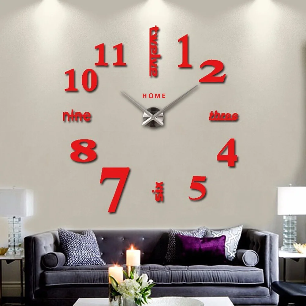 DIY большие настенные часы бесшумные акриловые самоклеющиеся цифровые 3D настенные часы Наклейка английские буквы большие часы домашний декор