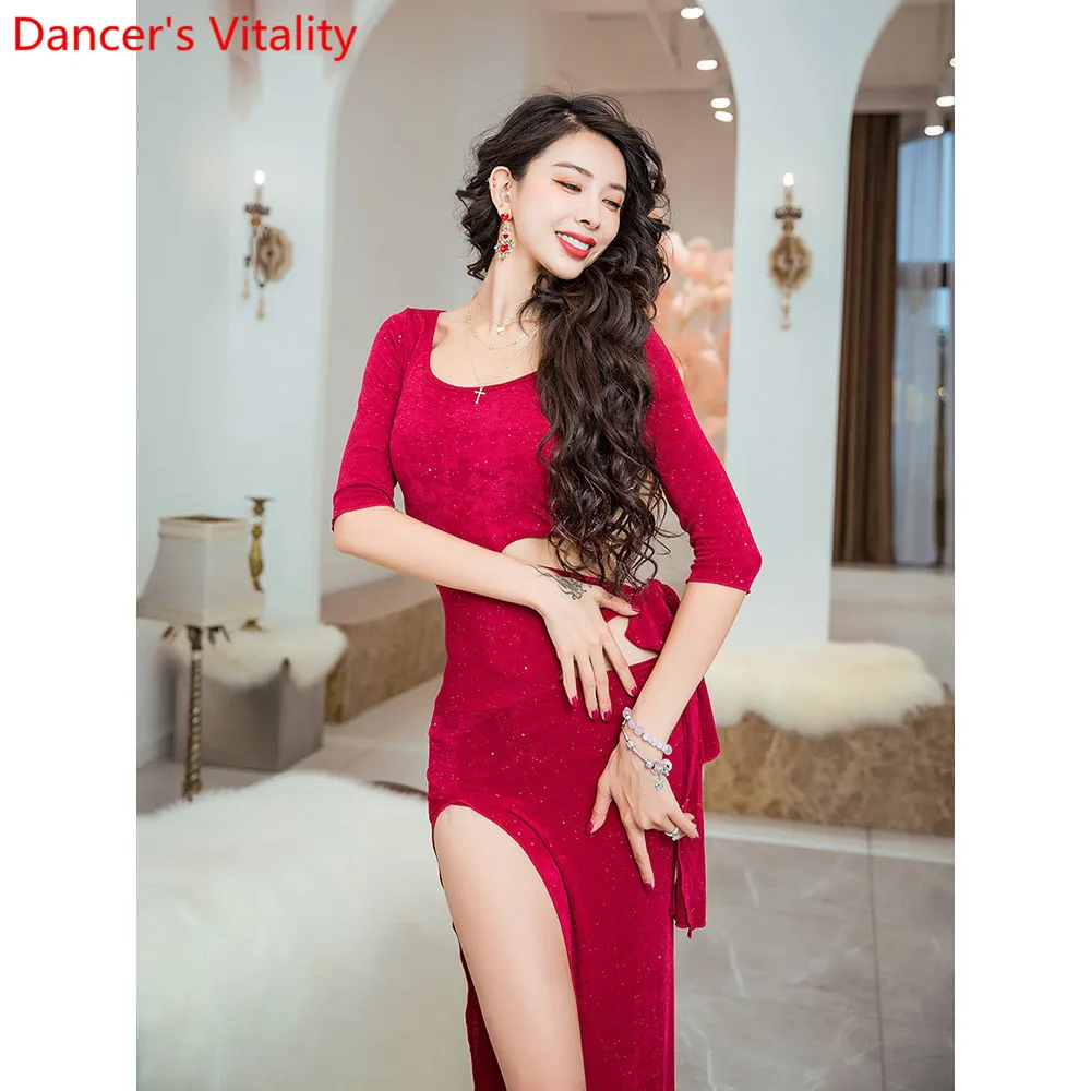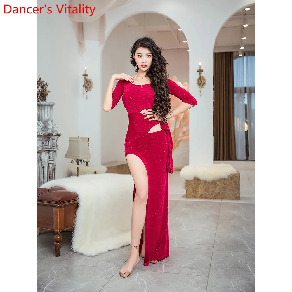 Одежда для танца живота, осенняя Женская сексуальная одежда с вырезами, длинное платье для начинающих, восточные индийские танцевальные групповые тренировочные наряды