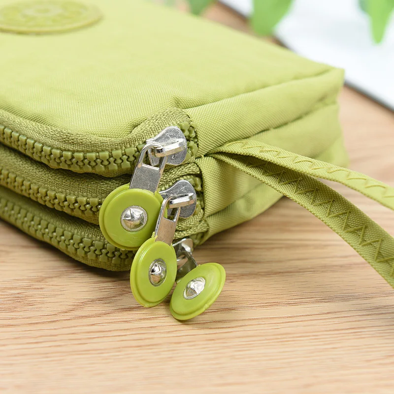 Модная женская мини-сумка для телефона, короткий кошелек, трехслойный кошелек на молнии, кошелек для монет, повседневный однотонный простой Дамский кошелек с ремешком на запястье для карт