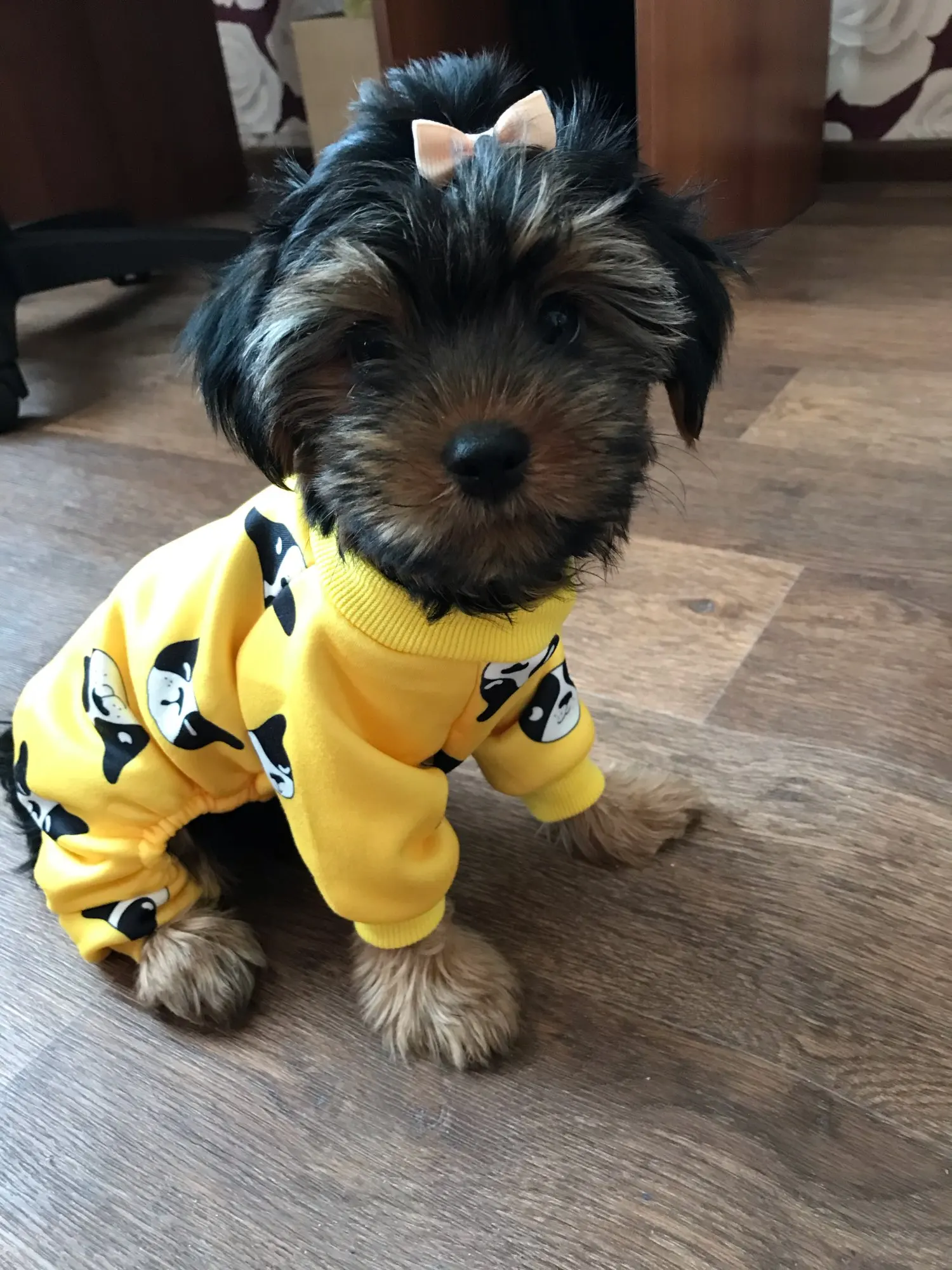 Маломерят, на стандартного щенка йорка в возрасте 4 мес размер L чуть великоват по дли6е, но через месяц думаю будет в самый раз. Сам по себе костюм неплохой