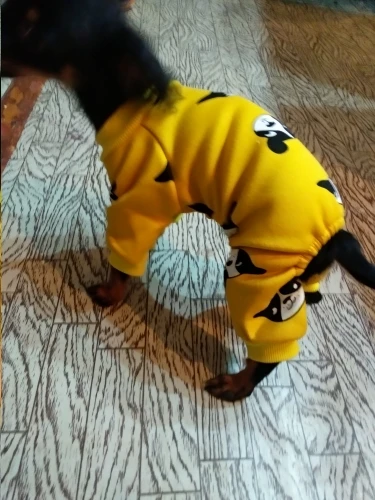 Не очень подошёл костюмчик пуделечку - узкие штанишки в бедрышках. Заказала три костюмчика у трёх разных продавцов, и у всех эта проблема. Не умеют шить на пуделя, Ляшко у пуделя потолще, и резиночка не надо делать на ножках и где хвостик. Резинка нажимает на хвостик и он не поднимается. Собака не может сходить в туалет из-за этого. Размер взяла правильно. Если брать меньше - то на задние ноги вообще не натянем , если больше, то резинка сзади вообще хвост прижмёт. Позже опубликую фотографии.