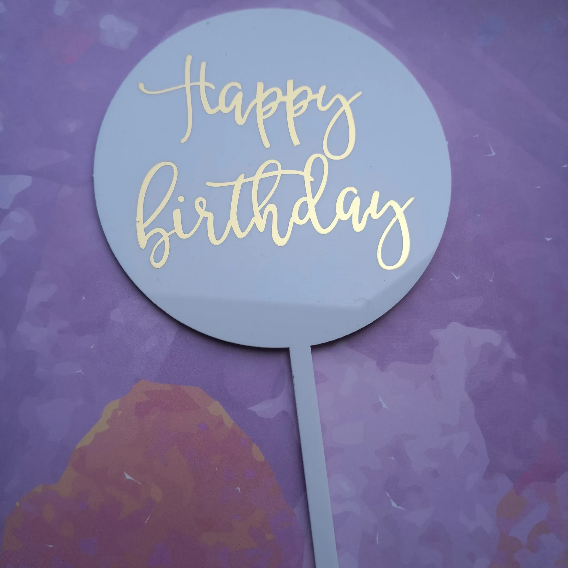 Круглый Топпер для торта «С Днем Рождения» с горячей штамповкой, акриловая надпись, украшение для торта, флага для мальчиков и девочек, товары для дня рождения G
