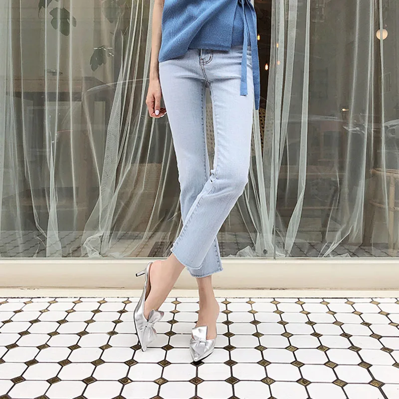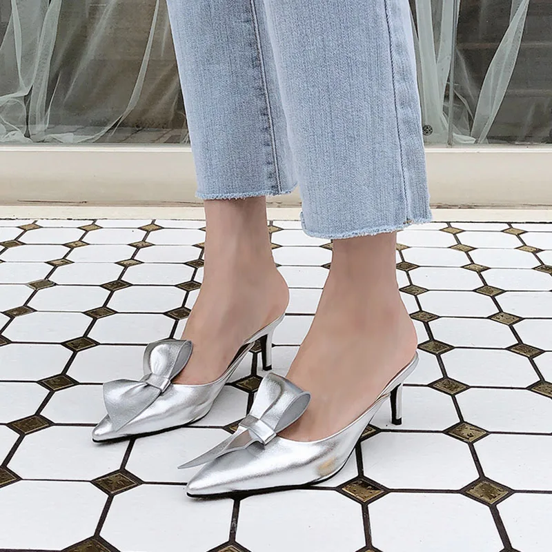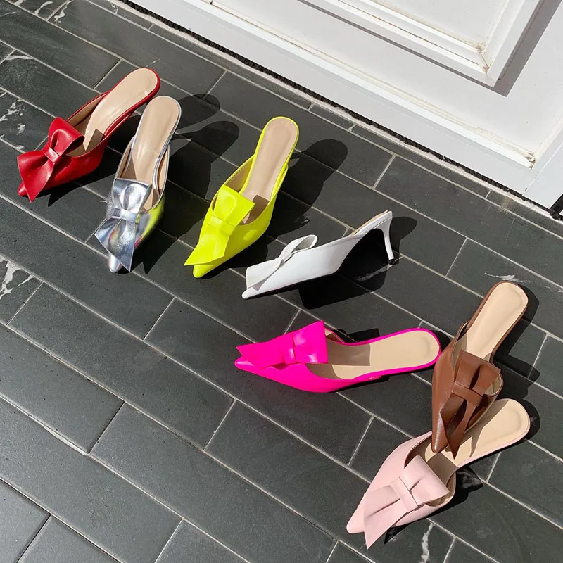 Женские шлепанцы с бантом, на высоком каблуке, летние, 2019
