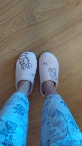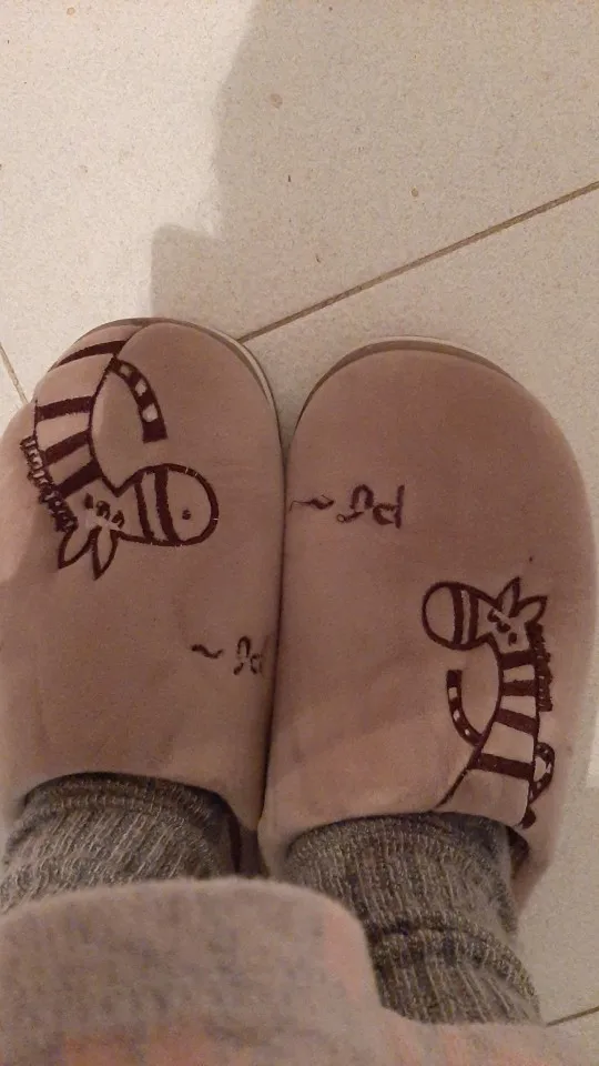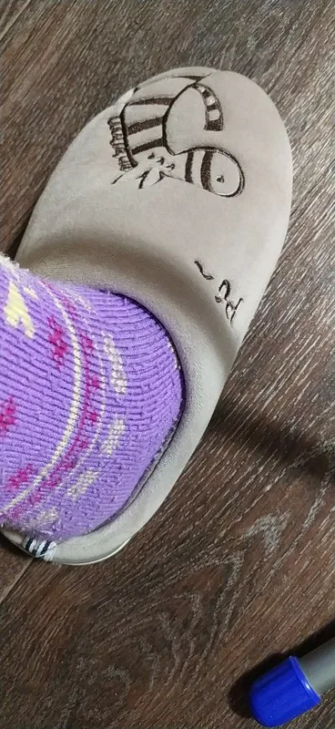 Тапочки как на фото. Но такие жаркие, что можно, мне кажется, по снегу ходить)) Ноги в них потеют.