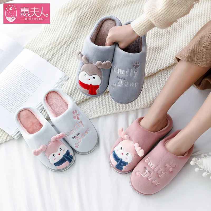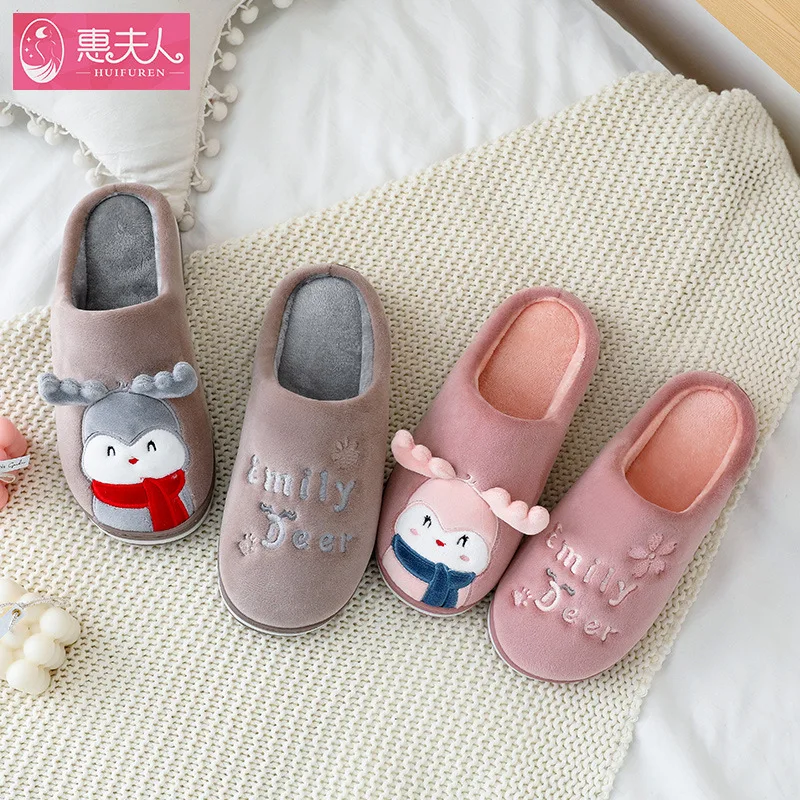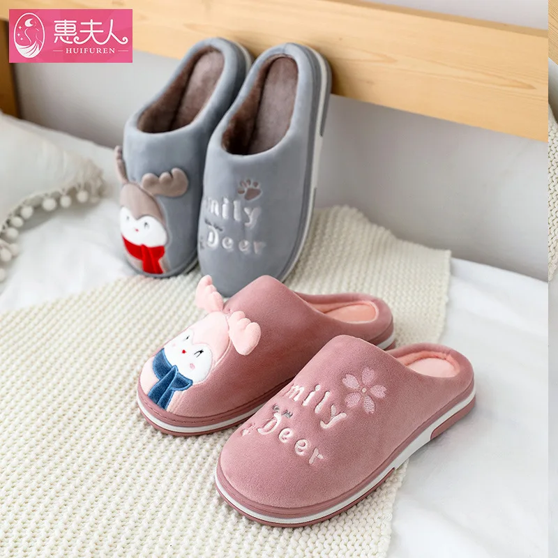Женские домашние тапочки, теплые плюшевые шлепанцы для влюбленных, Нескользящие Шлепанцы из мягкого хлопка в мультяшном стиле, SH09161, зима 2022