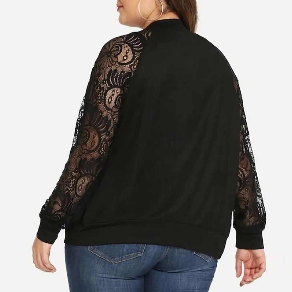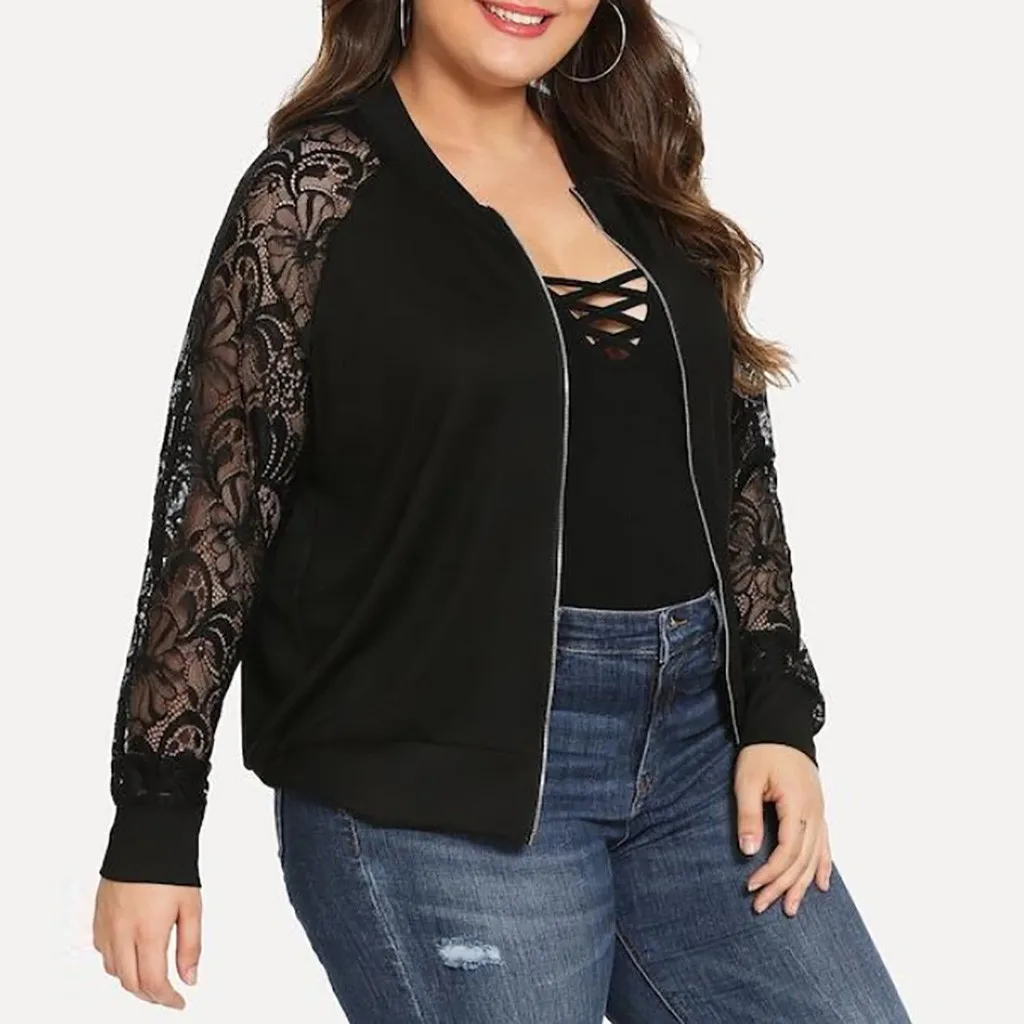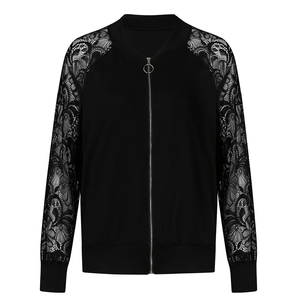 Осенние куртки Женские однотонные повседневные размера плюс кружевные Свободные шаль кардиган накидка с длинным рукавом Женские куртки-бомберы # YL10