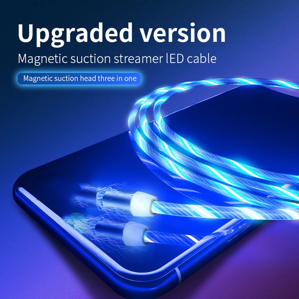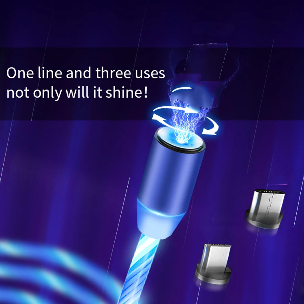 Магнитный кабель светодиодный поток светящийся кабель с разъемом Mi...